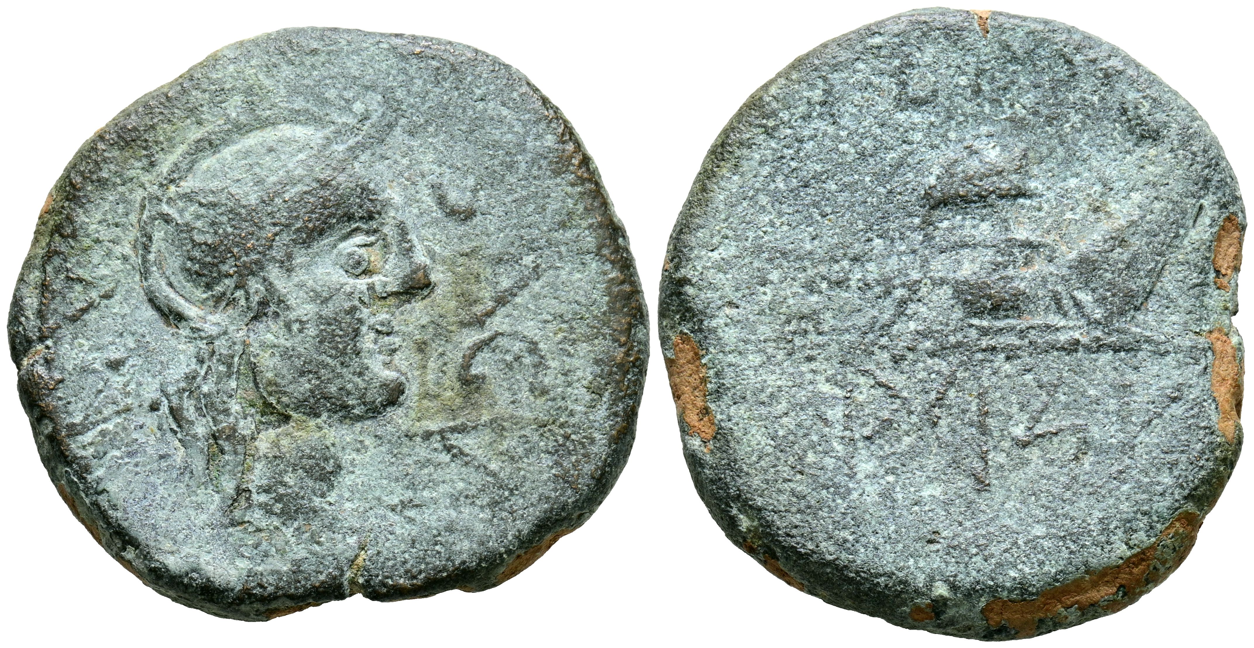 ARSE-SAGUNTO (Sagunto, Valencia). As. (Ae. 19,34g/31mm). 50-20 a.C. (FAB-2083). Anv: Cabeza de Roma a derecha, alrededor leyenda: SAGVNTINI. Rev: Proa a derecha, delante caduceo, debajo leyenda: ARSE, encima: L.B.M.P. MBC-/BC+.