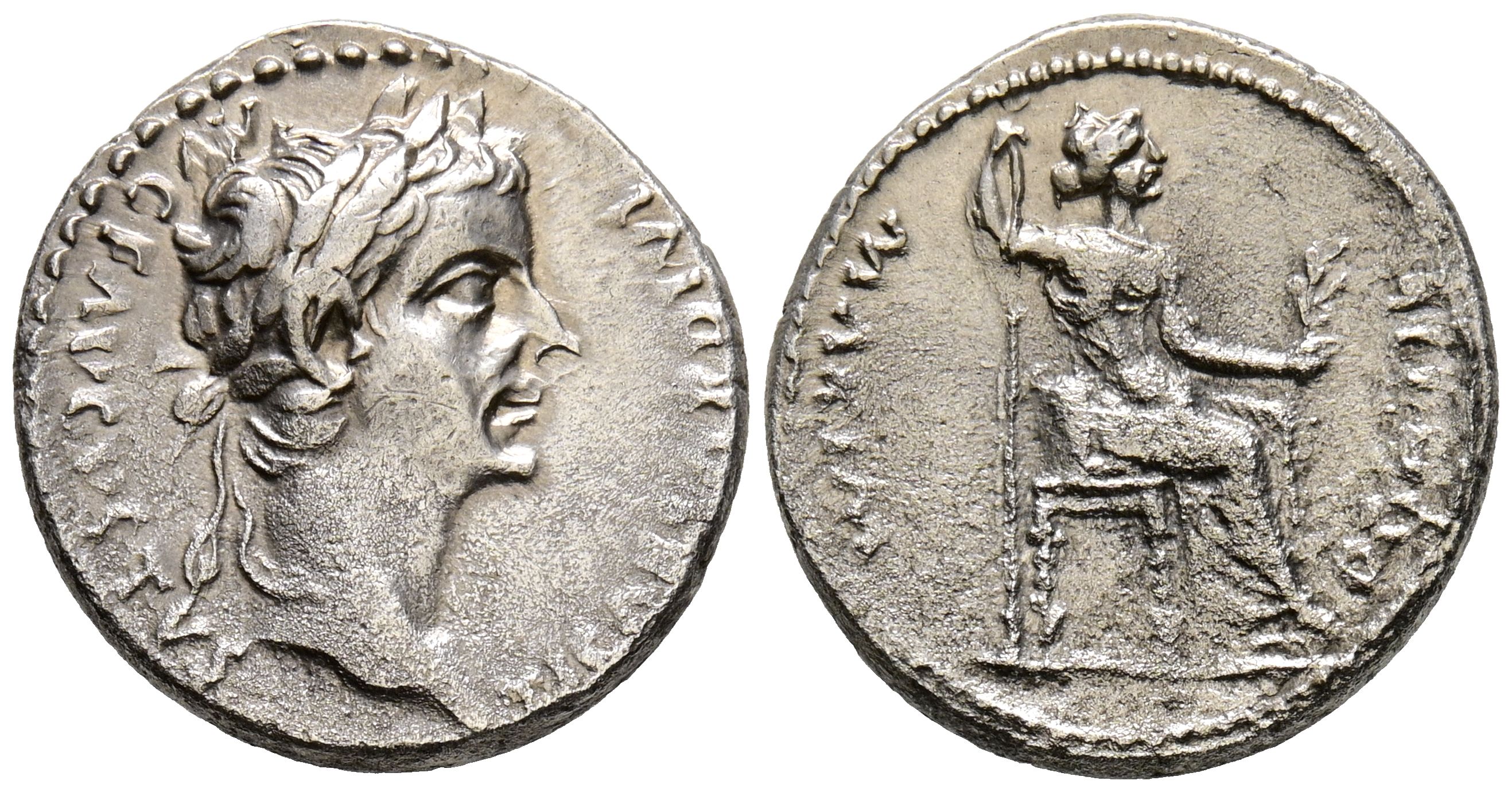 TIBERIO. Denario. (Ar. 3,48g/19mm). 14-37 d.C. Lugdunum. (RIC 30). Anv: Cabeza laureada de Tiberio a derecha portando cetro, alrededor leyenda: TI CAESAR DIVI AVGVSTVS. Rev: Livia sentada a derecha, alrededor leyenda: MAXIM PONTIF. EBC-/MBC+. Oxidaciones limpiadas.
