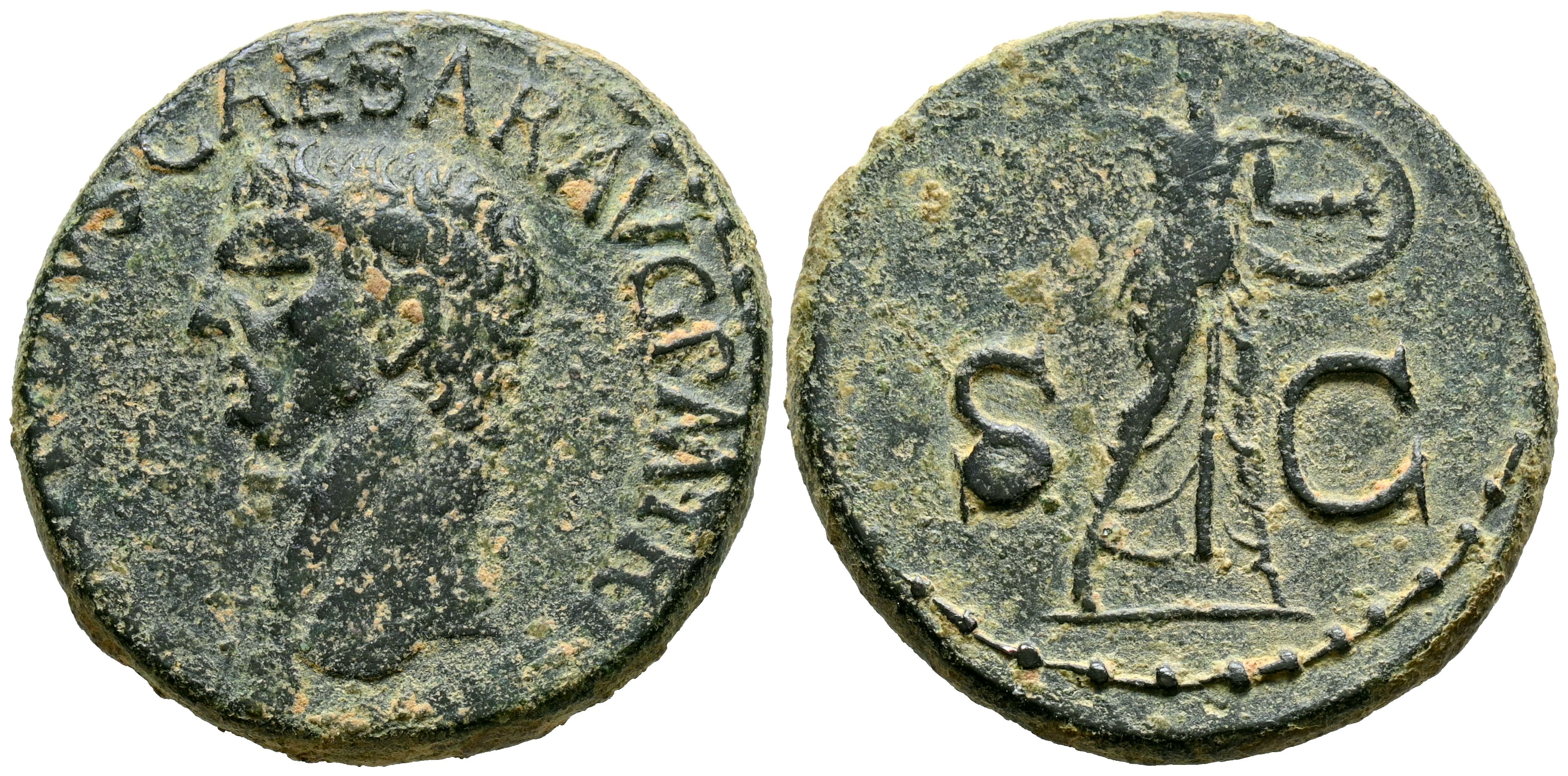 CLAUDIO I. As. (Ae. 12,01g/27mm). 41-50 d.C. Roma. (RIC 100). Anv: Cabeza de Claudio I a izquierda, alrededor leyenda: TI CLAVDIVS CAESAR AVG P M TR P IMP. Rev: Minerva avanzando a derecha portando lanza y escudo, entre S-C. MBC.