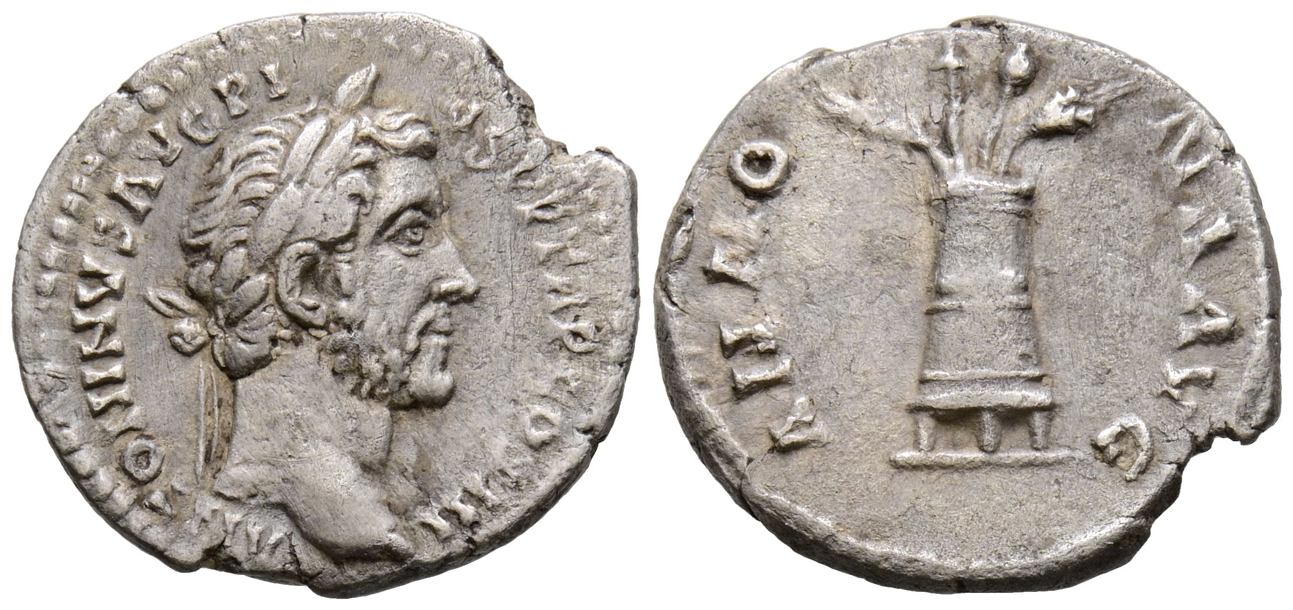 ANTONINO PIO. Denario. (Ar. 2,96g/17mm). 140-143 d.C. Roma. (RIC 62a). Anv: Cabeza laureada de Antonino Pío a derecha, alrededor leyenda: ANTONINVS AVG PIVS PP TR P COS III. Rev: Modio con espigas, alrededor leyenda: ANNONA AVG. MBC.