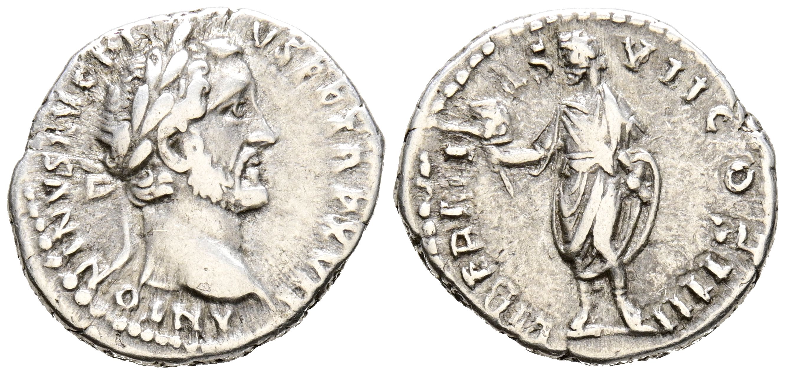 ANTONINO PIO. Denario. (Ar. 2,95g/18mm). 153-154 d.C. Roma. (RIC 235). Anv: Busto laureado de Antonino Pío a derecha, alrededor leyenda: ANTONINVS AVG PIVS P P TR P XVII. Rev: Liberalitas estante a izquierda sosteniendo ábaco, alrededor leyenda: LIBERALITAS VII COS IIII. MBC.