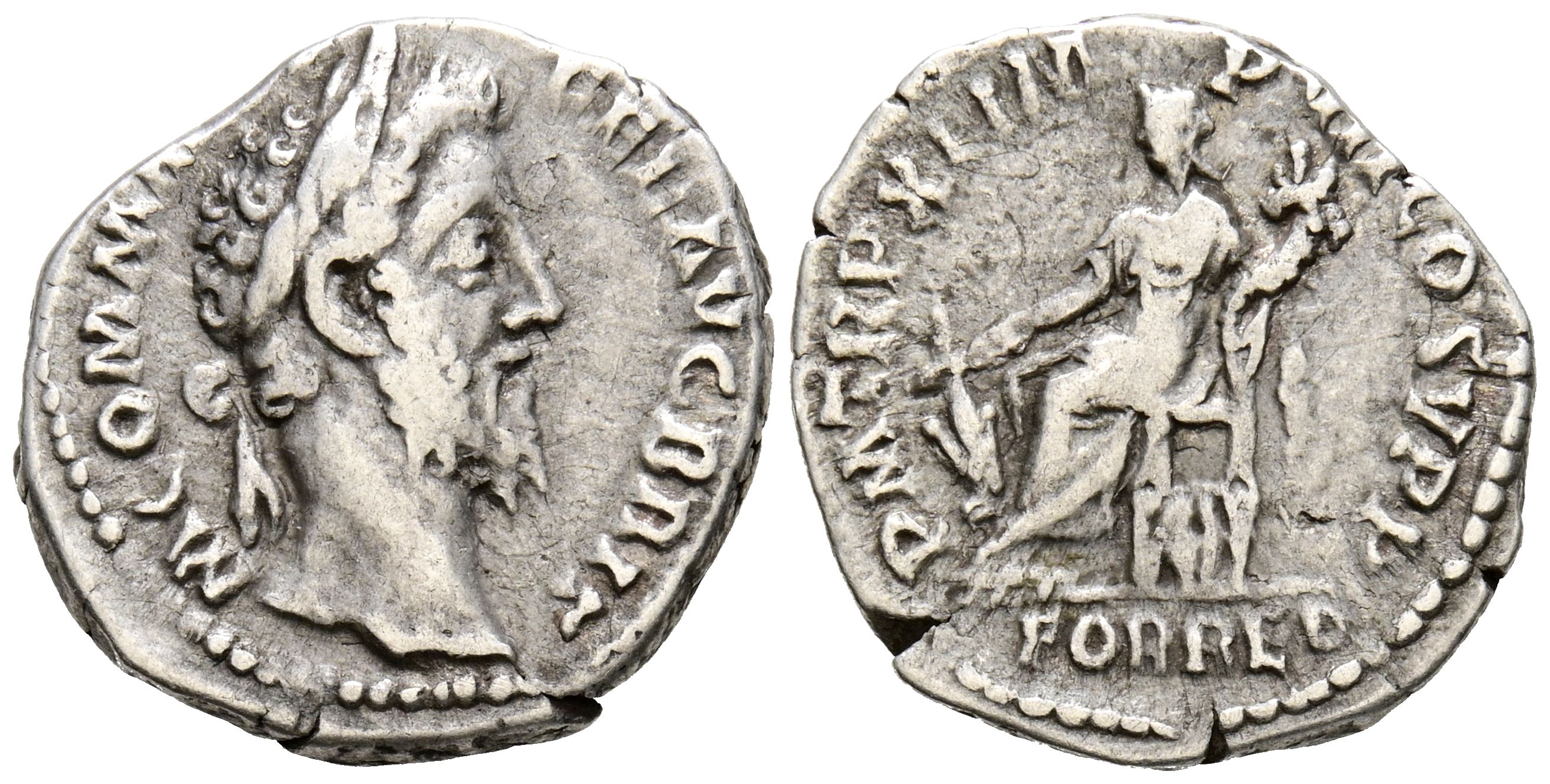 COMODO. Denario. (Ar. 3,16g/19mm). 186. Roma. (RIC 131). Anv: Cabeza laureada de Cómodo a derecha, alrededor leyenda: M COMM ANT P FEL AVG BRIT. Rev: Fortuna sentada a izuierda con timón sobre globo y cornucopia, en exergo: FOR RED, alrededor leyenda: P M TR P XI IMP VII COS V P P. MBC.