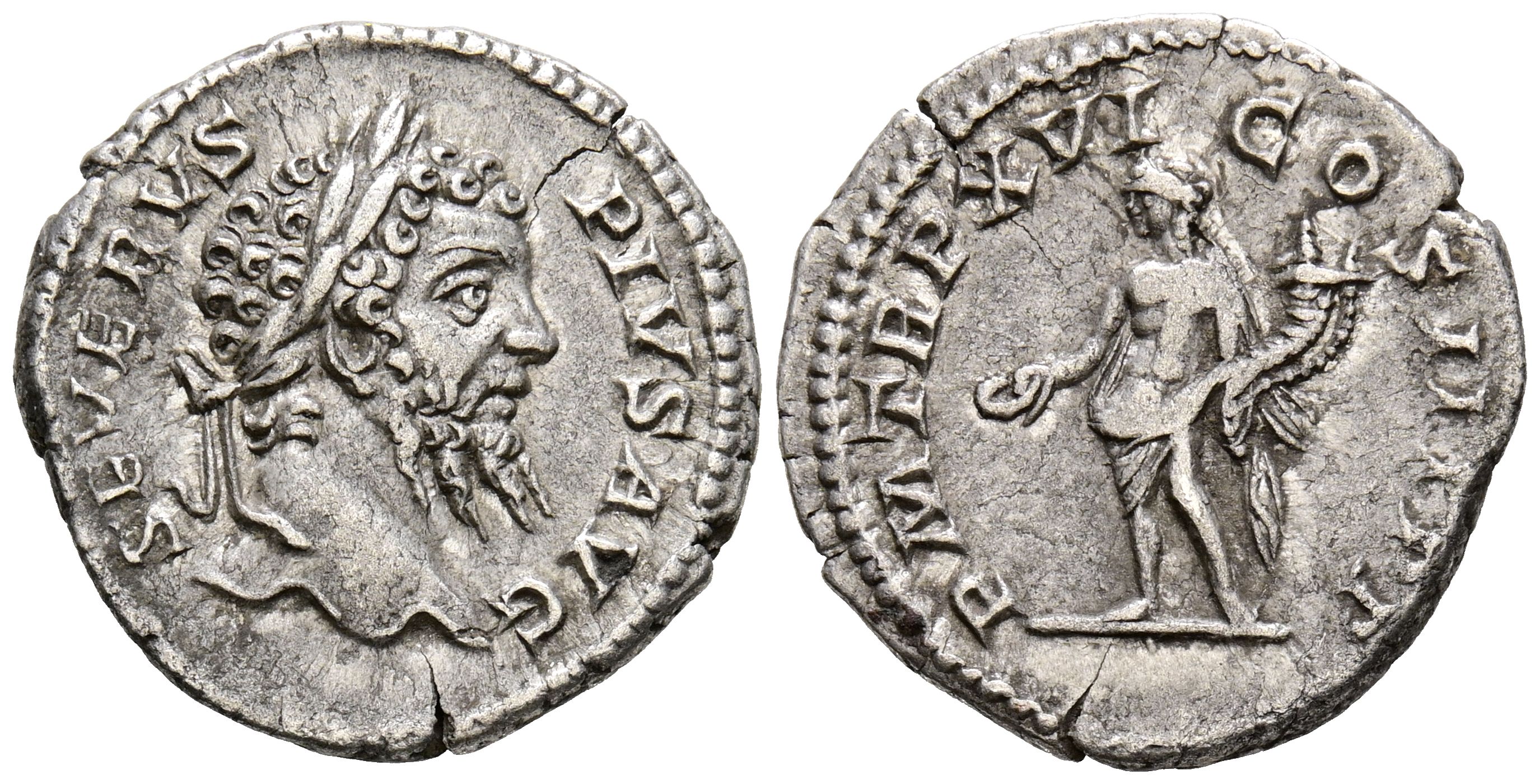 SEPTIMO SEVERO. Denario. (Ar. 3,12g/19mm). 208 d.C. Roma. (RIC 219). Anv: Busto laureado de Septimo Severo a derecha, alrededor leyenda: SEVERVS PIVS AVG. Rev: Genio estante a izquierda con patera y cornucopia, alrededor leyenda: P M TR P XVI COS III PP. MBC+/MBC.