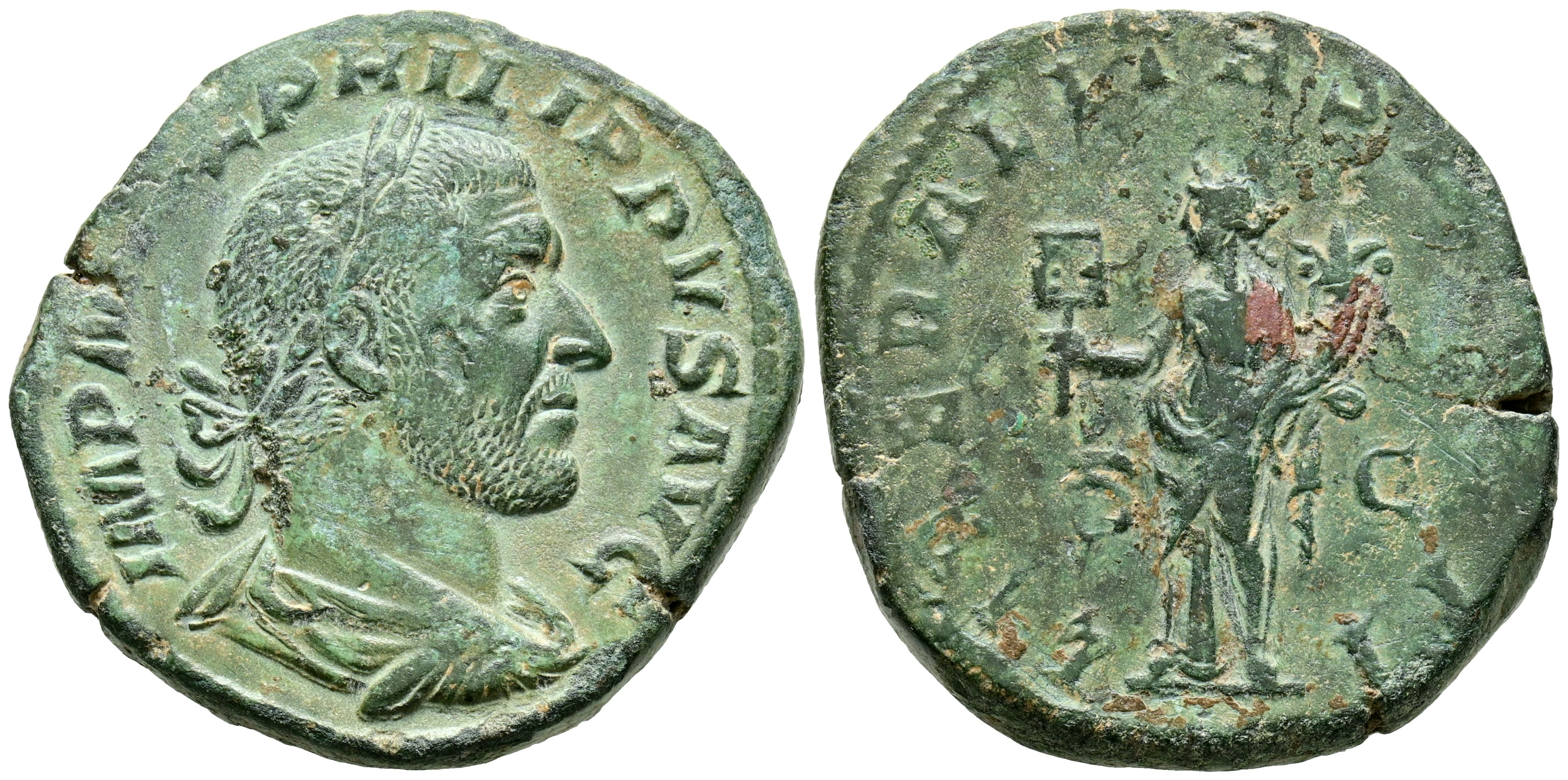 FILIPO I. Sestercio. (Ae. 18,79g/30mm). 224-249 d.C. Roma. (RIC 180a). Anv: Busto laureado y drapeado de Filipo I a derecha, alrededor leyenda: IMP M IVL PHILIPPVS AVG. Rev: Liberalitas estante a izquierda portando ábaco y cornucopia, en campo S-C, alrededor leyenda: LIBERALITAS AVG III. MBC+.