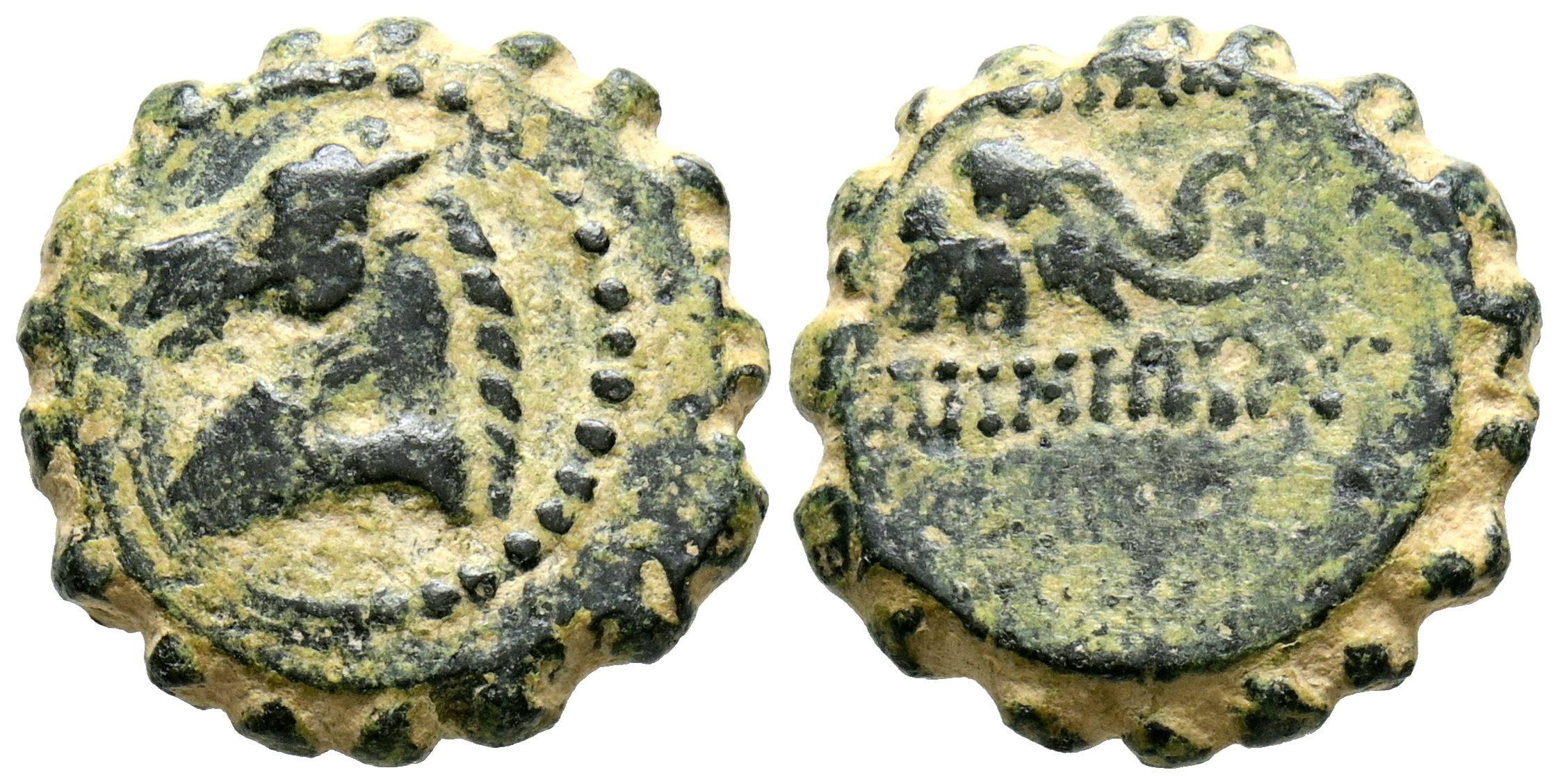 REINO SELEUCIDA, Demetrios I Sóter. Ae15. (Ae. 3,57g/15mm). 162-150 a.C. Antioquía. (Seaby 1646). Anv: Cabeza de caballo a la izquierda. Rev: Cabeza de elefante a la derecha, alrededor leyenda griega: BAΣIΛEΩΣ ΔHMHTPIOY. MBC.