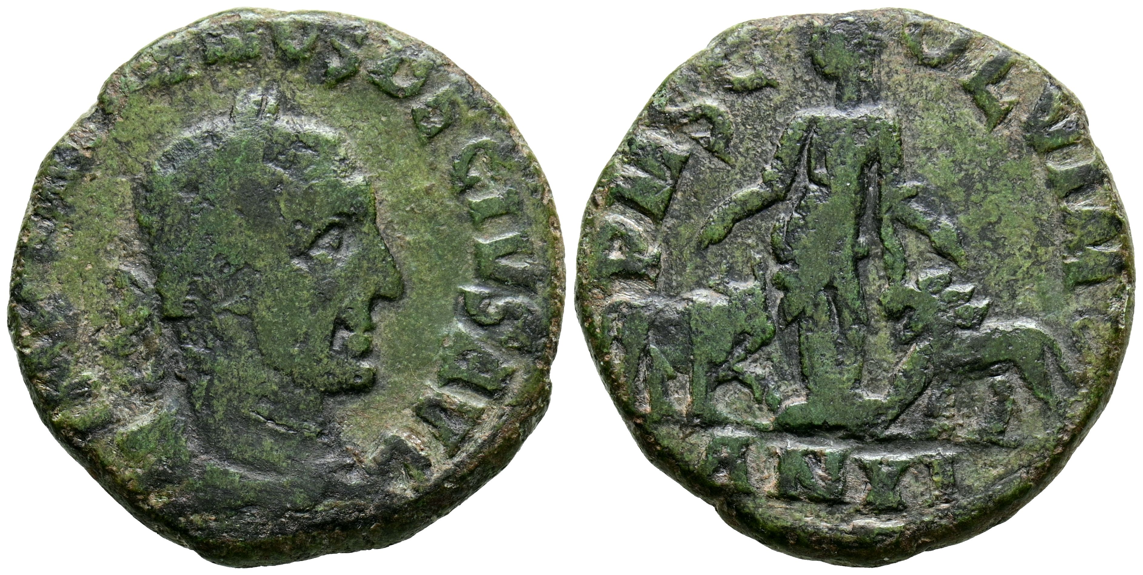 TRAJANO DECIO. Ae26. (Ae. 12,13g/26mm). 249-251 d.C. Viminacium, Moesia. (AMNG 125). Anv: Busto laureado y drapeado de Trajano Decio, alrededor leyenda: IMP CAES TRAIANVS DECIVS AVG. Rev: Mujer estante a izquierda entre toro y león, en exergo: AN XI, alrededor leyenda: P M S COL VIM. MBC.