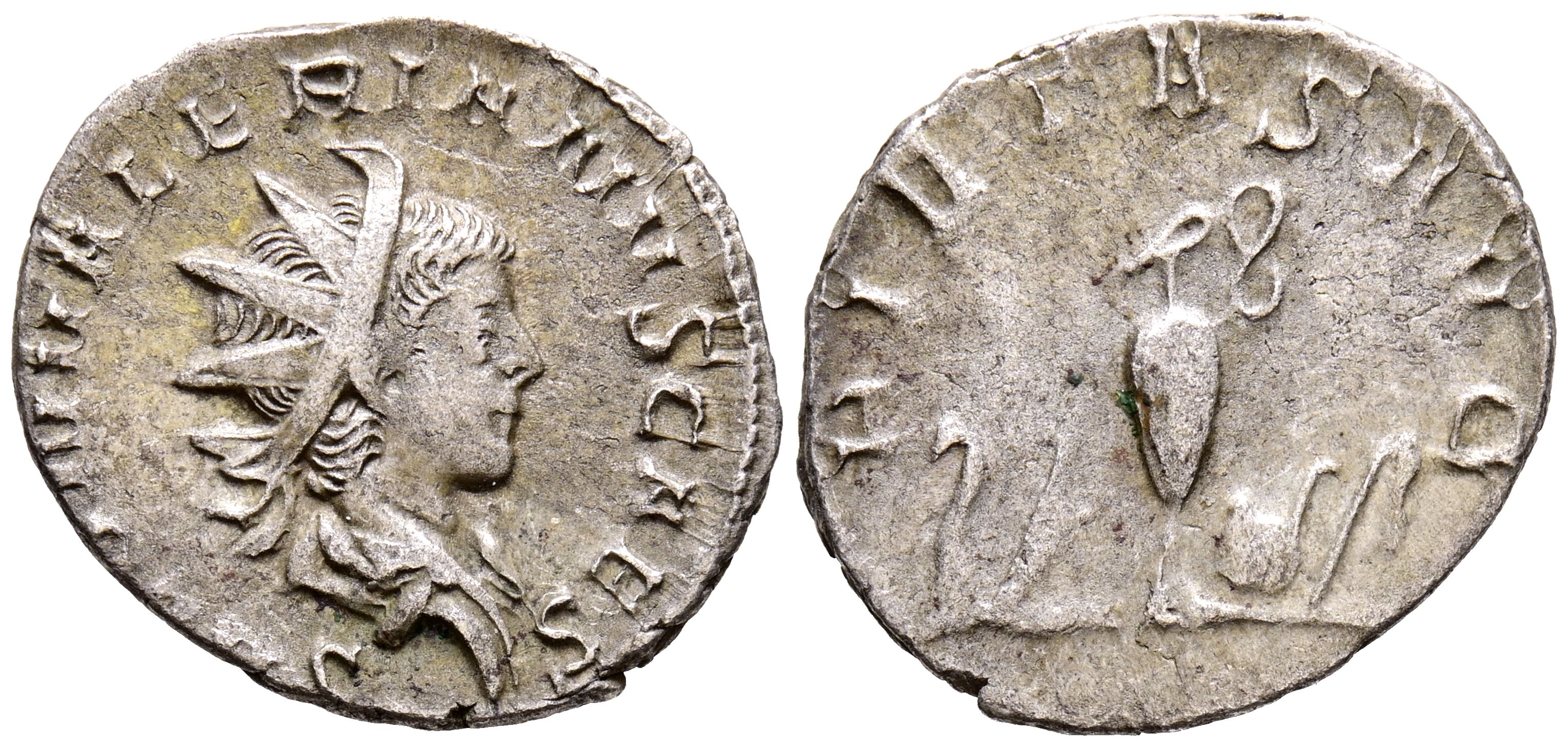 SALONINO. Antoniniano. (Ar. 2,81g/22mm). 259-260 d.C. Colonia. (RIC 9). Anv: Busto radiado y drapeado de Salonino a derecha, alrededor leyenda: SALON VALERIANVS CAES. Rev: Lítuo, cuchillo, patera, jarra, símpulo y cetro, encima leyenda: PIETAS AVG. MBC.