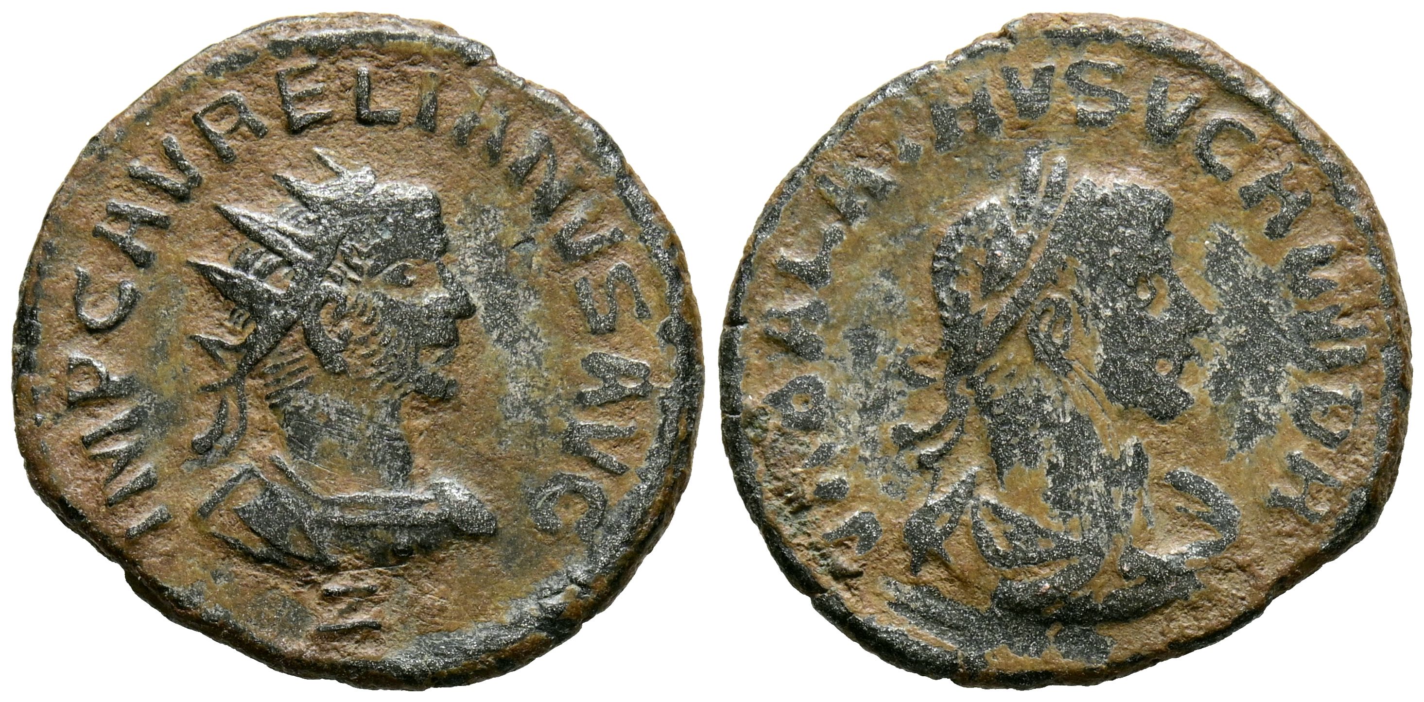 AURELIANO y VABALATO. Antoniniano. (Ae. 3,44g/20mm). 270-272 d.C. Antioquía. (RIC 381). Anv: Busto radiado y drapeado de Aureliano a derecha, debajo Z, alrededor leyenda: IMP C AVRELIANVS AVG. Rev: Busto laureado y drapeado de Vabalato a derecha, alrededor leyenda: VABALATHVS V C R IM D R. MBC.