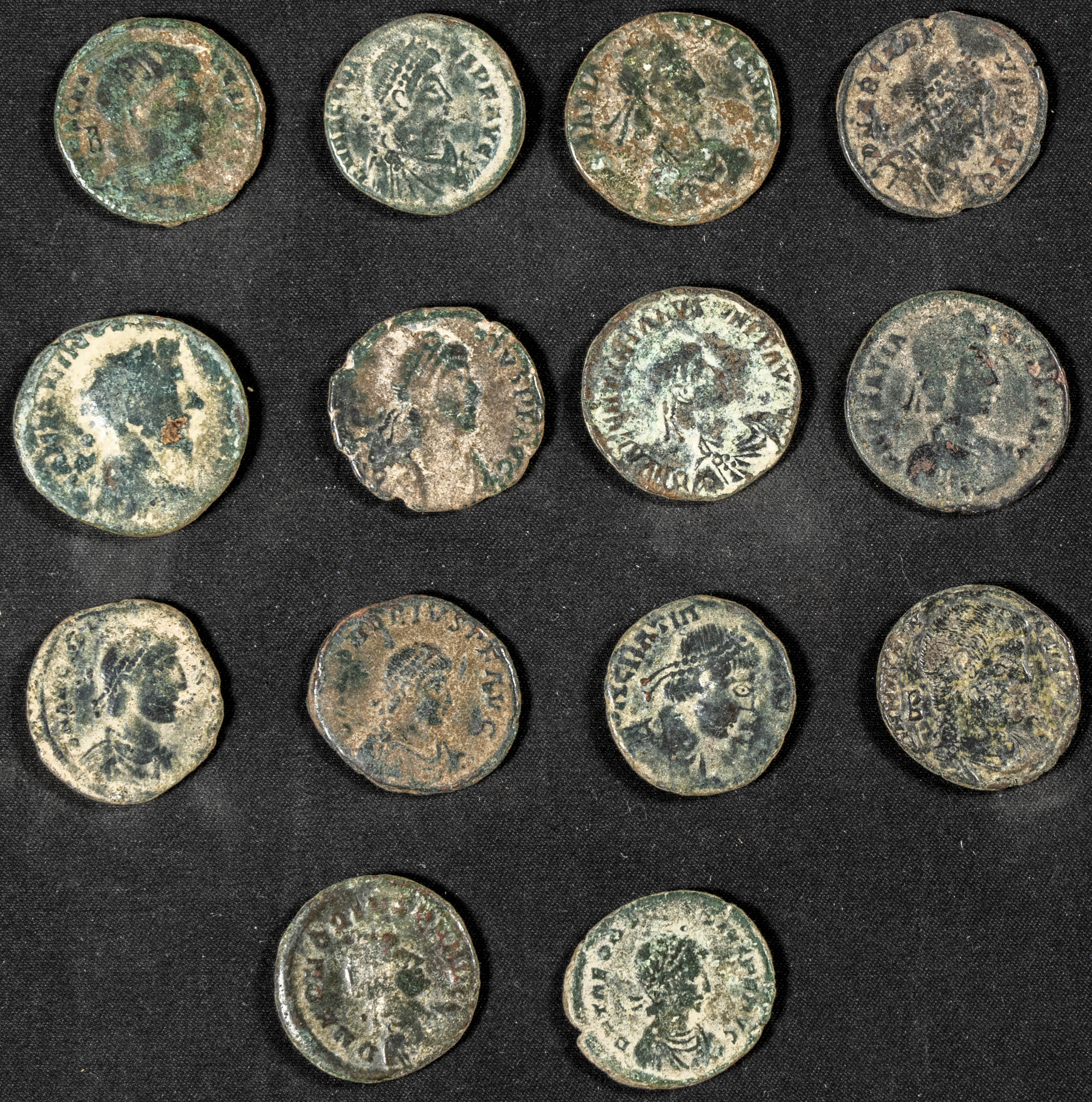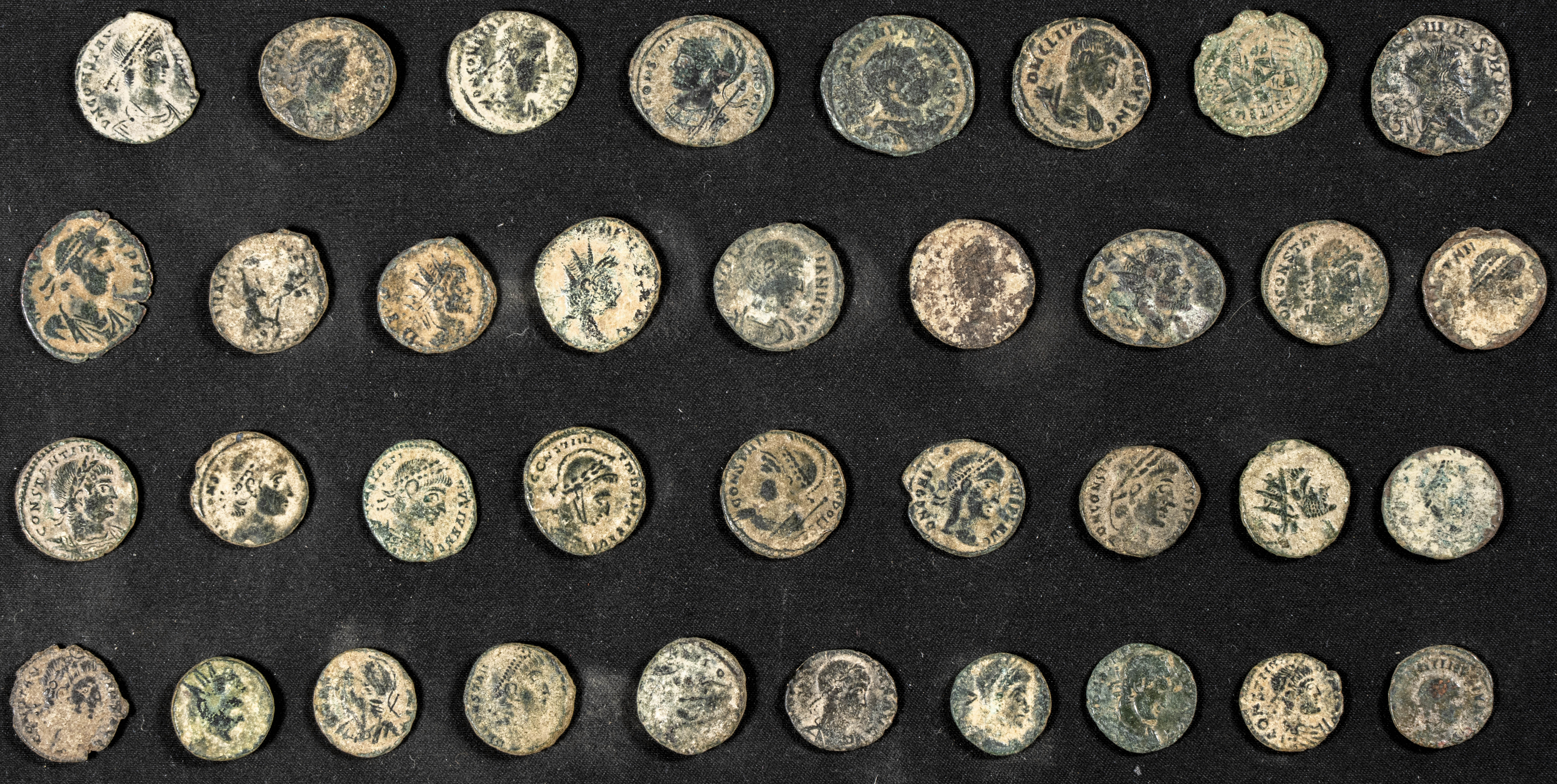 Conjunto de 50 bronces pequeños del bajo imperio romano de distintos emperadores. A EXAMINAR.