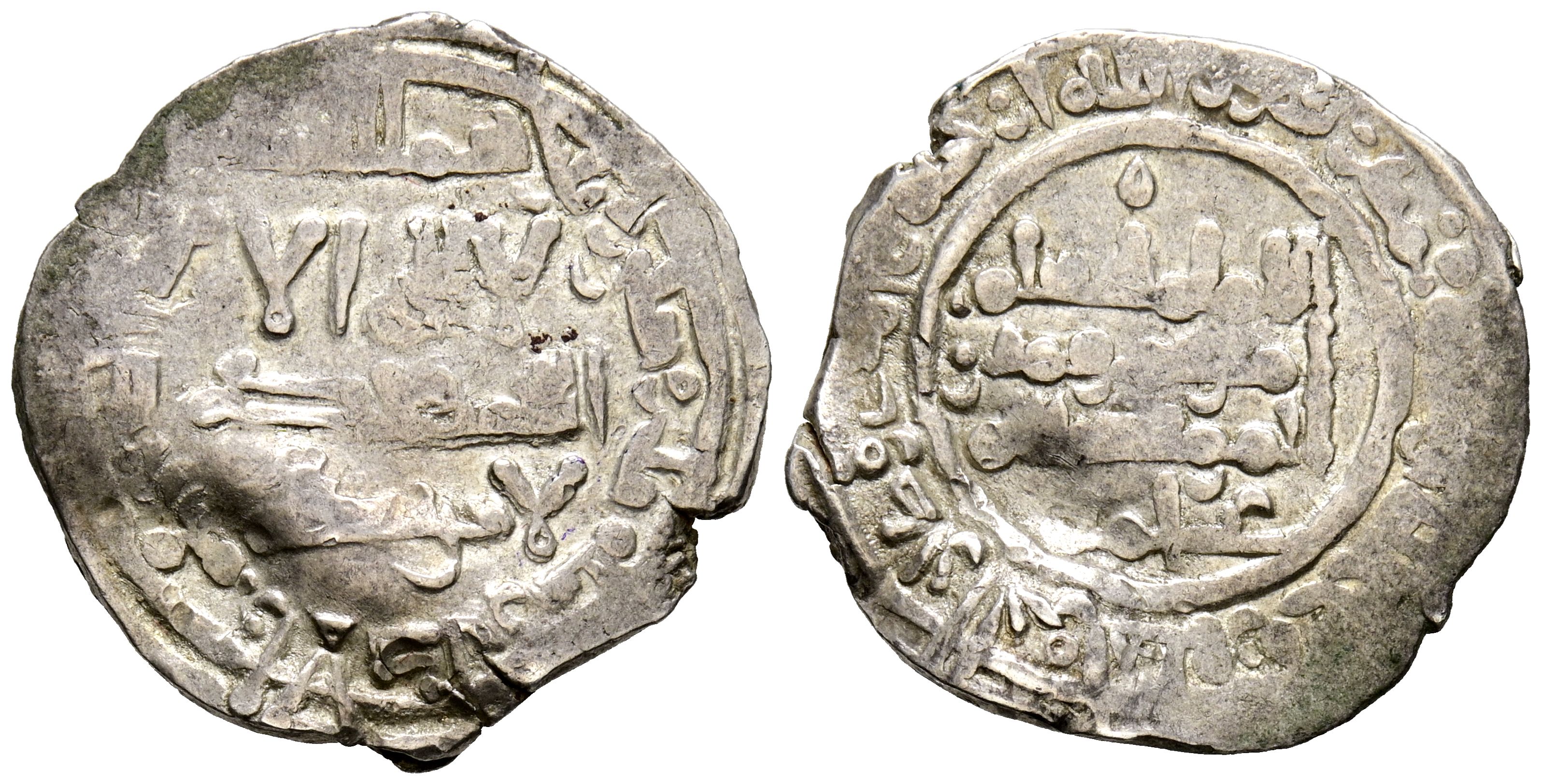 CALIFATO DE CÓRDOBA, Hisham II. Dirham. (Ar. 2,56g/22mm). 366H. al-Ándalus / الاندلس. (Vives 498; R. Frochoso 2009 366.11; Miles 263C). Citando a Amir en IIA. MBC-.