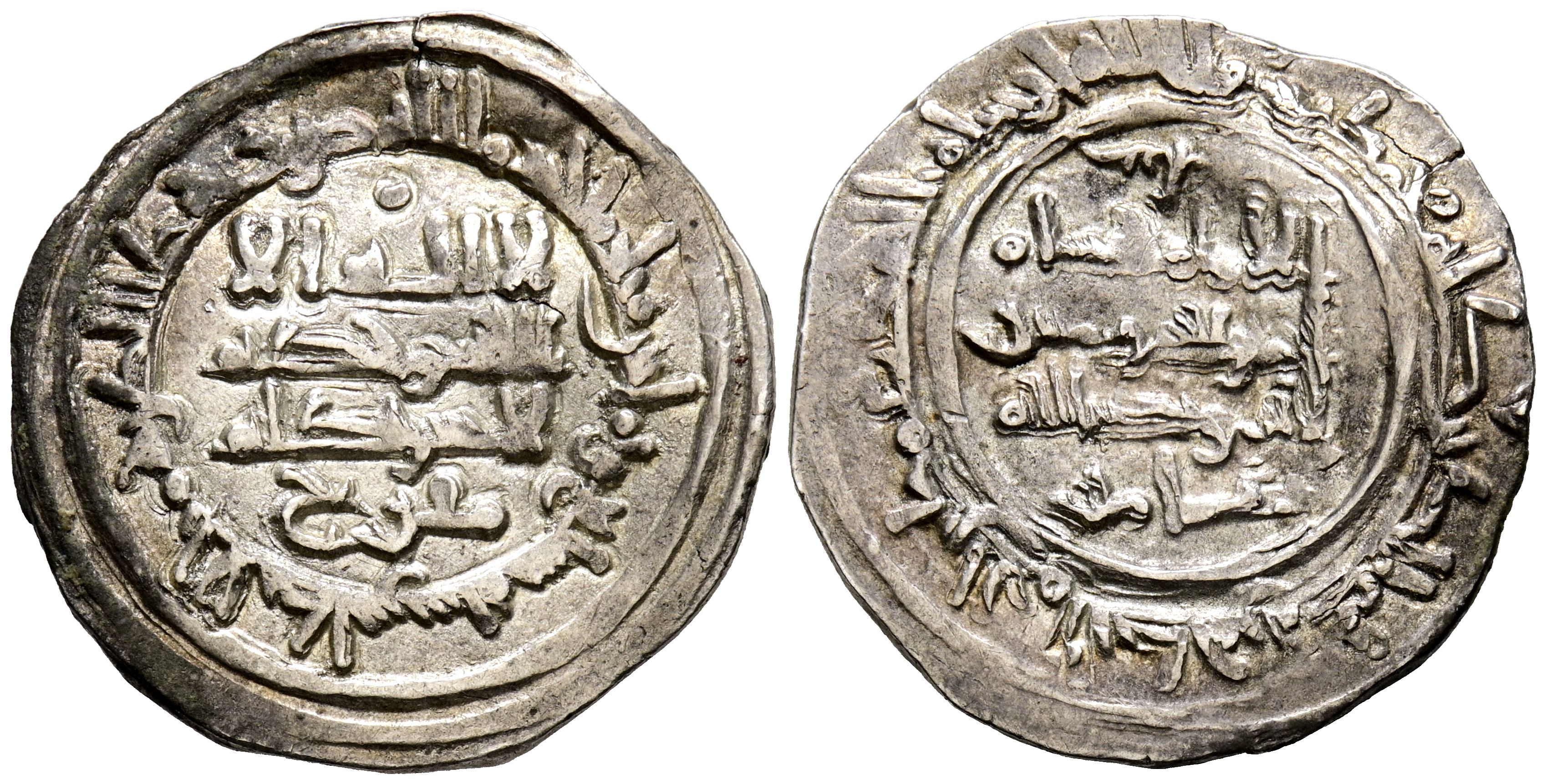CALIFATO DE CÓRDOBA, Hisham II. Dirham. (Ar. 3,52g/24mm). 387H. al-Ándalus / الاندلس. (Vives 533; R. Frochoso 2009 387.39). Citando a Mufariy en la IA y Amir en la IIA. MBC+. Alabeada.