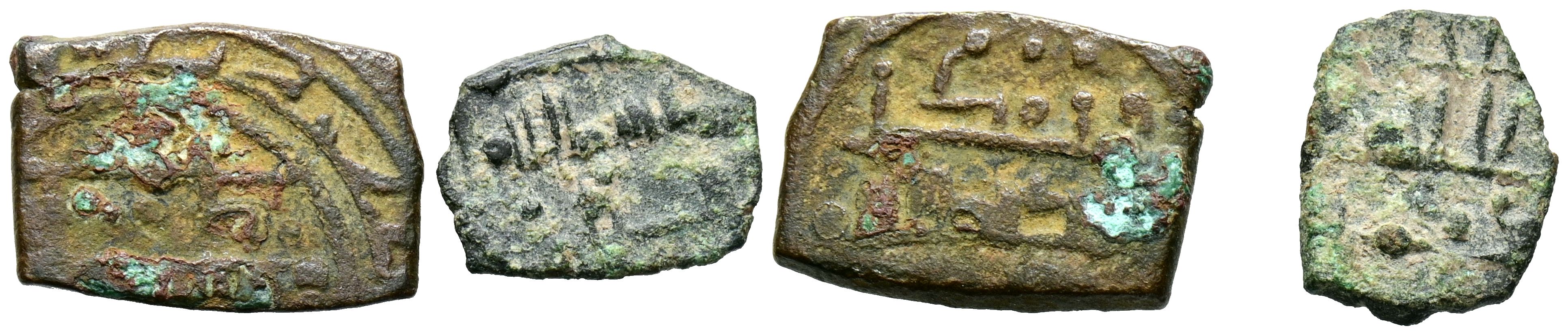 REINOS DE TAIFAS. Aftasíes de Badajoz. Umar al-Mutawakkil Abu Hasfs. (455-487H). Pareja de dos fragmentos de Dirhams. MBC. A EXAMINAR.