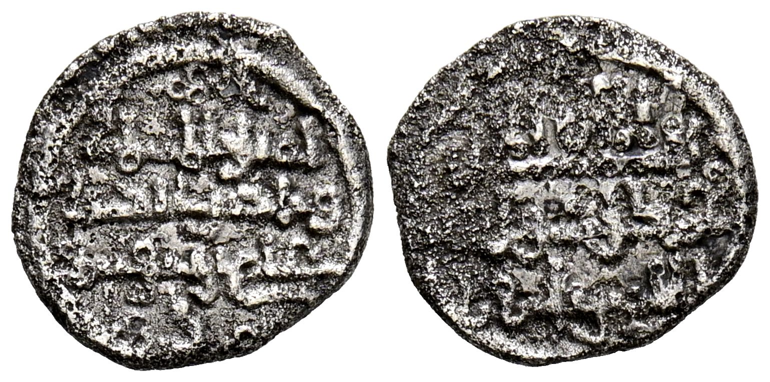 ALMORÁVIDES, Ali ibn Yusuf con el emir Tashfin. Quirate. (Ar. 0,59g/10mm). (Vives 1824; Benito Cj3). BC.
