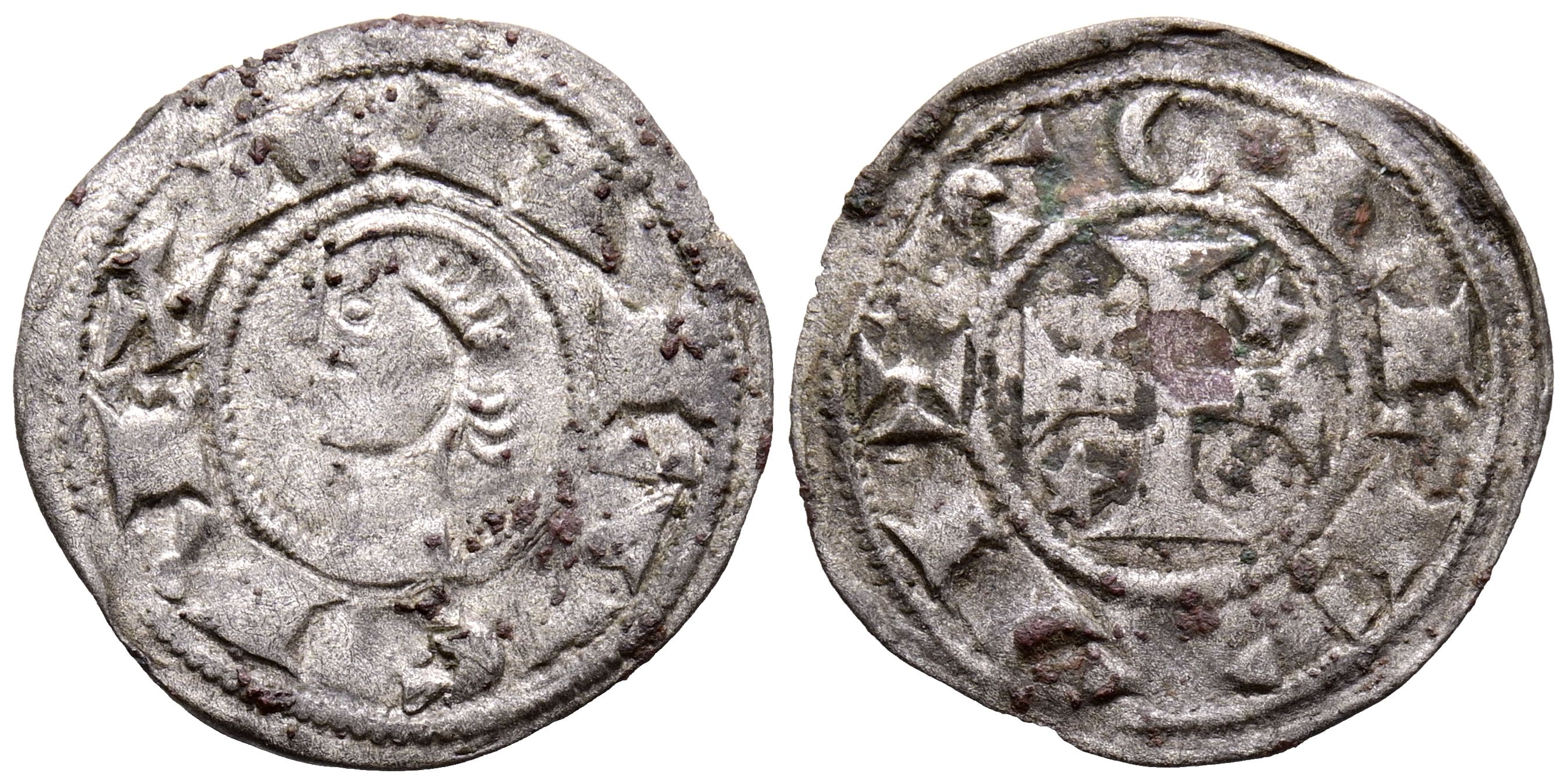 ALFONSO VIII (1158-1214). Dinero. (Ve. 0,84g/19mm). Taller itinerante de batalla. (Imperatrix A8:28.1; FAB-23 como Alfonso I de Aragón). Anv: Busto a izquierda dentro de gráfilar circular, alrededor leyenda: ANFVS REX. Rev: Cruz patada con estrella en primer y cuarto cuadrante, todo dentro de una gráfila circular, alrededor leyenda: TOLLETA. MBC.