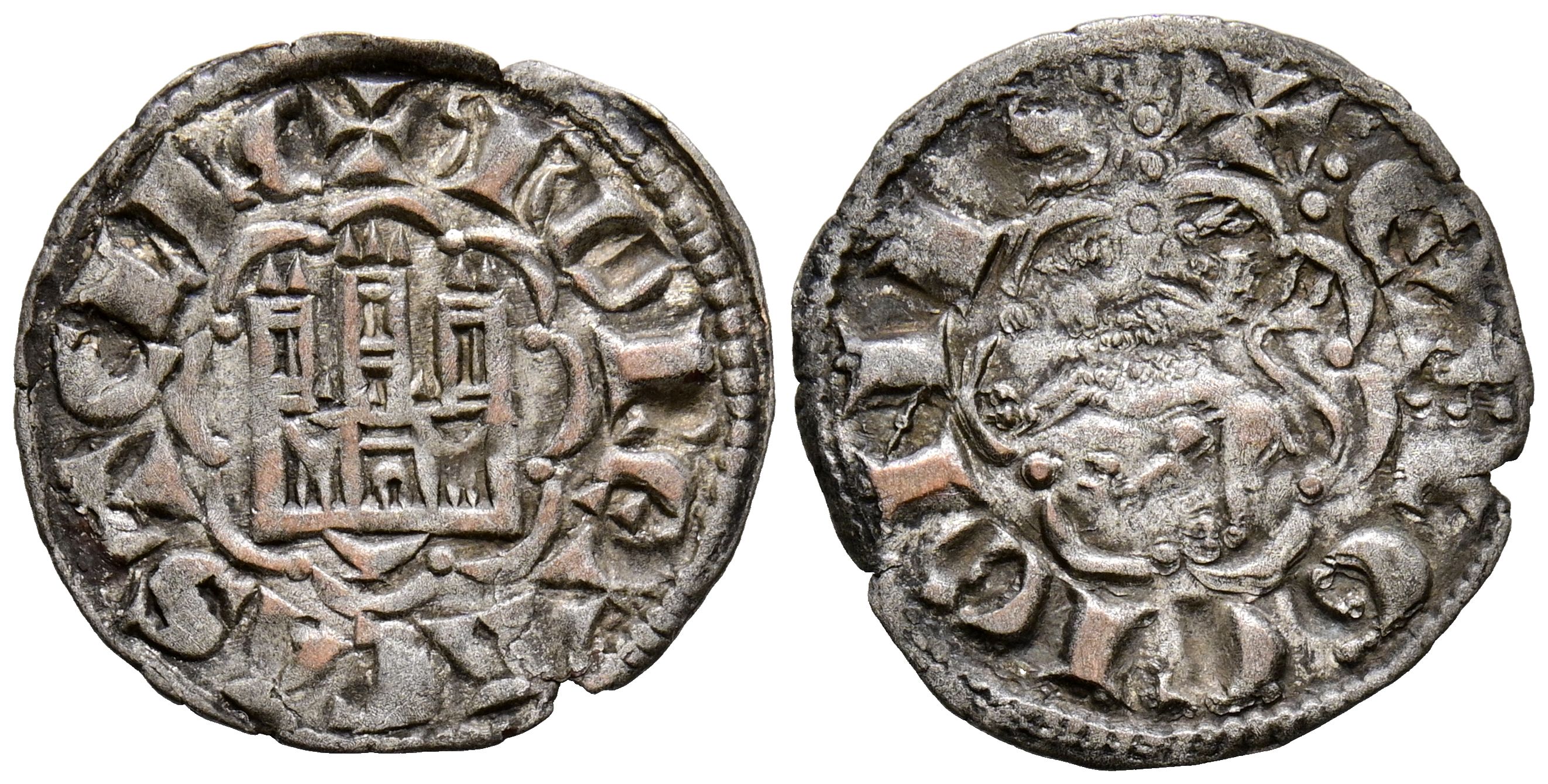 ALFONSO X (1252-1284). Blanca Alfonsí. (Ve. 0,67g/19mm). Cuenca. (Imperatrix A10:11.14; FAB-266 como Novén). Anv: Castillo, debajo cuenco sin pie, todo dentro de gráfila lobular, alrededor leyenda: MONETA CASTELLE. Rev: León rampante a izquierda dentro de gráfila lobular, alrededor leyenda: ET LEGIONIS. MBC+.