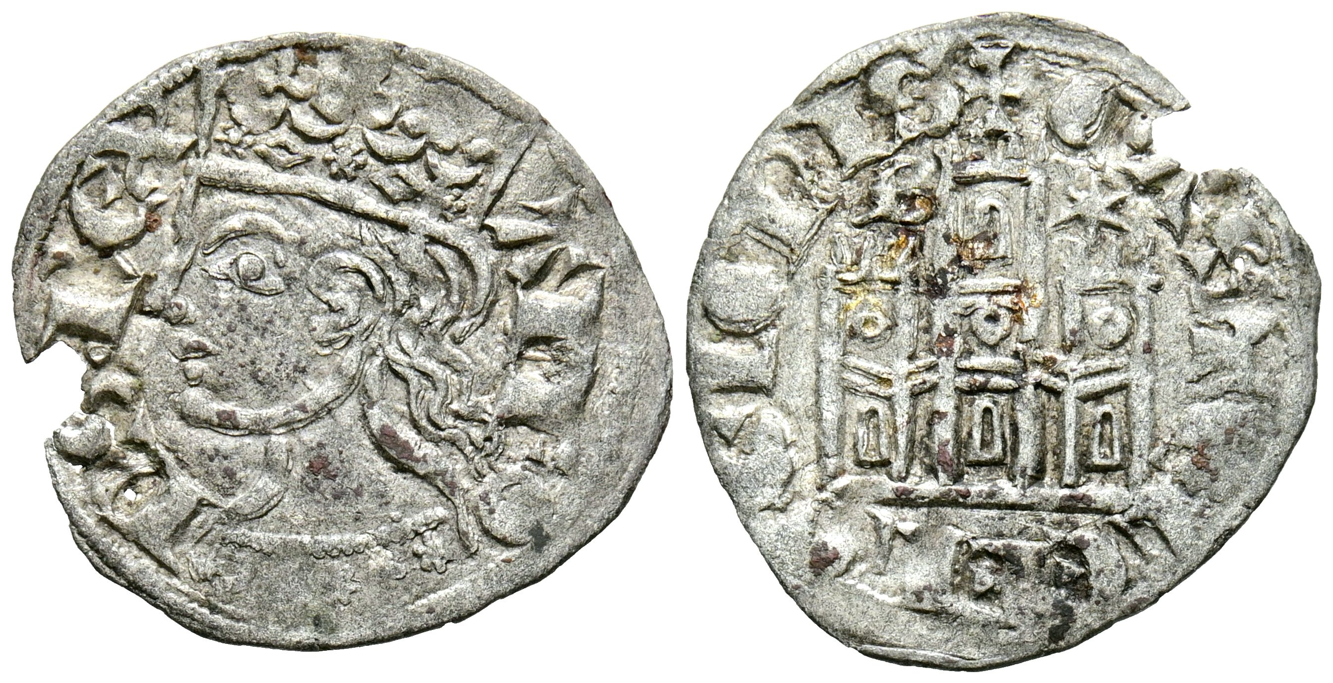 ALFONSO XI (1312-1350). Cornado. (Ve. 0,70g/19mm). Burgos. (Imperatrix A11:2.2(75); FAB-335.1). Anv: Busto coronado de Alfonso XI a izquierda, alrededor leyenda: ALFONS REX. Rev: Castillo, entre la torre principal B y estrella, alrededor leyenda: CASTELLE ET LEGIONIS. MBC. Pequeña falta en cospel y oxidaciones.