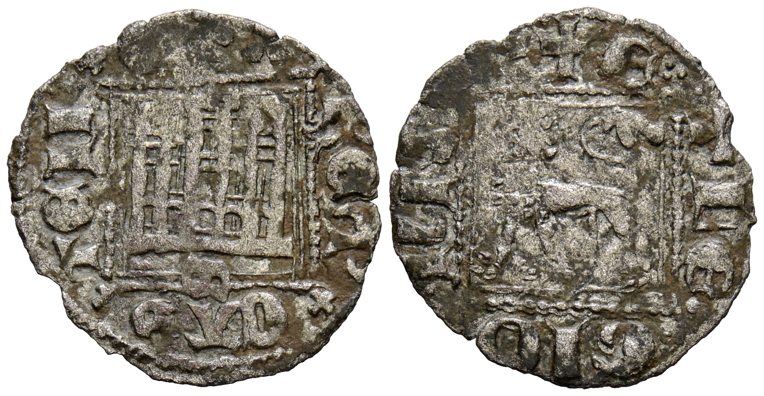 ALFONSO XI (1312-1350). Dinero Novén. (Ve. 0,65g/18mm). Sevilla. (Imperatrix A11:1.24; FAB-358.1). Anv: Castillo, debajo S tumbada en forma de 8, todo dentro de gráfila cuadrada, alrededor leyenda: ALF REX CASTELLE. Rev: León pasando a izquierda, alrededor leyenda: ET LEGIONIS. MBC.