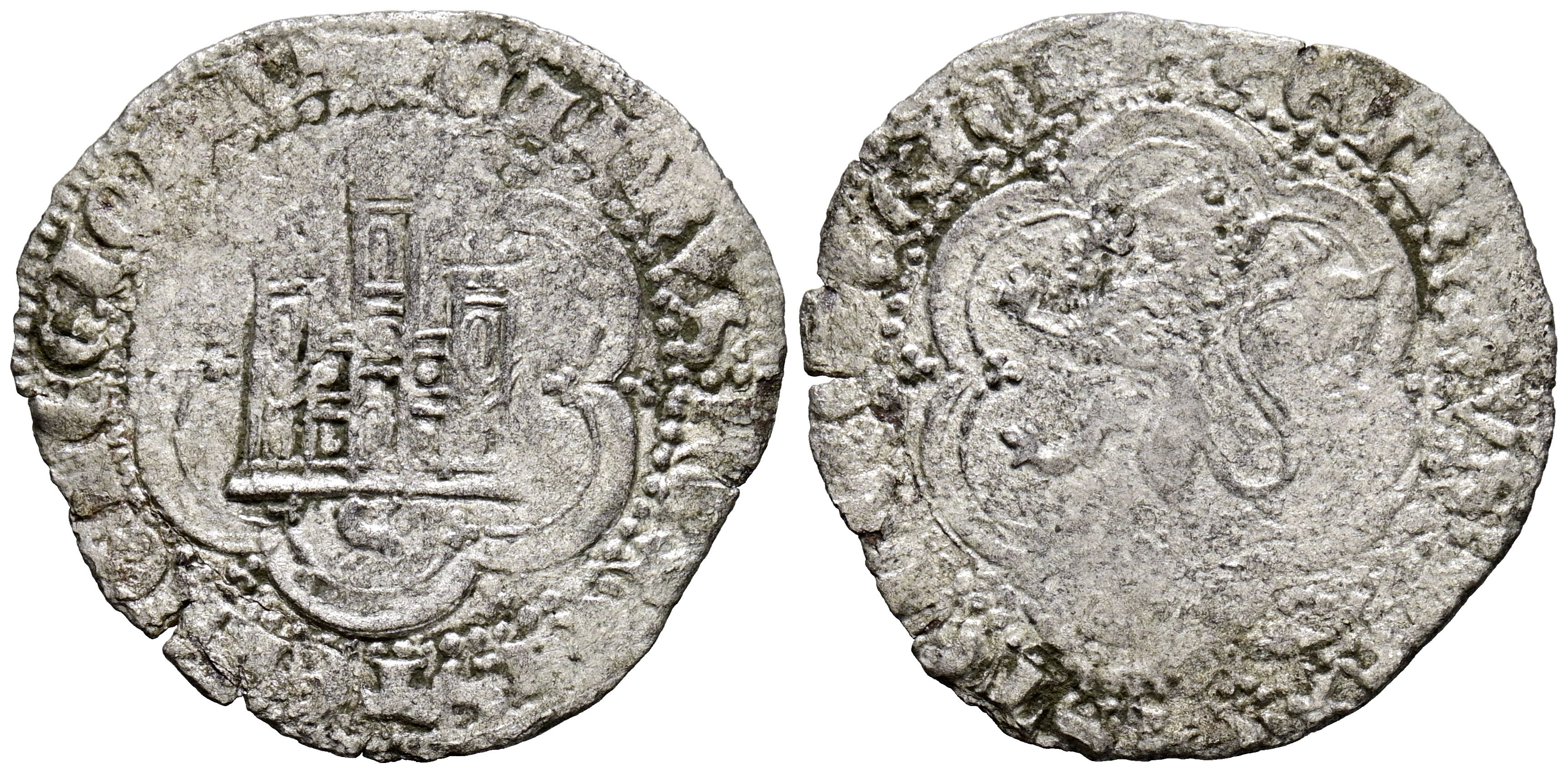 PEDRO I (1350-1368). 2 Maravedís. (Ve. 1,83g/24mm). Sevilla. (Imperatrix P1:8.11; FAB-388). Anv: Castillo, debajo S, todo dentro de gráfila globular doble, alrededor leyenda: PETRVS REX CASTELLE E LEGIONIS. Rev: León rampante a izquierda dentro de gráfila globular doble, alrededor leyenda: PETRVS REX CASTELLE E LEGIONIS. MBC-.