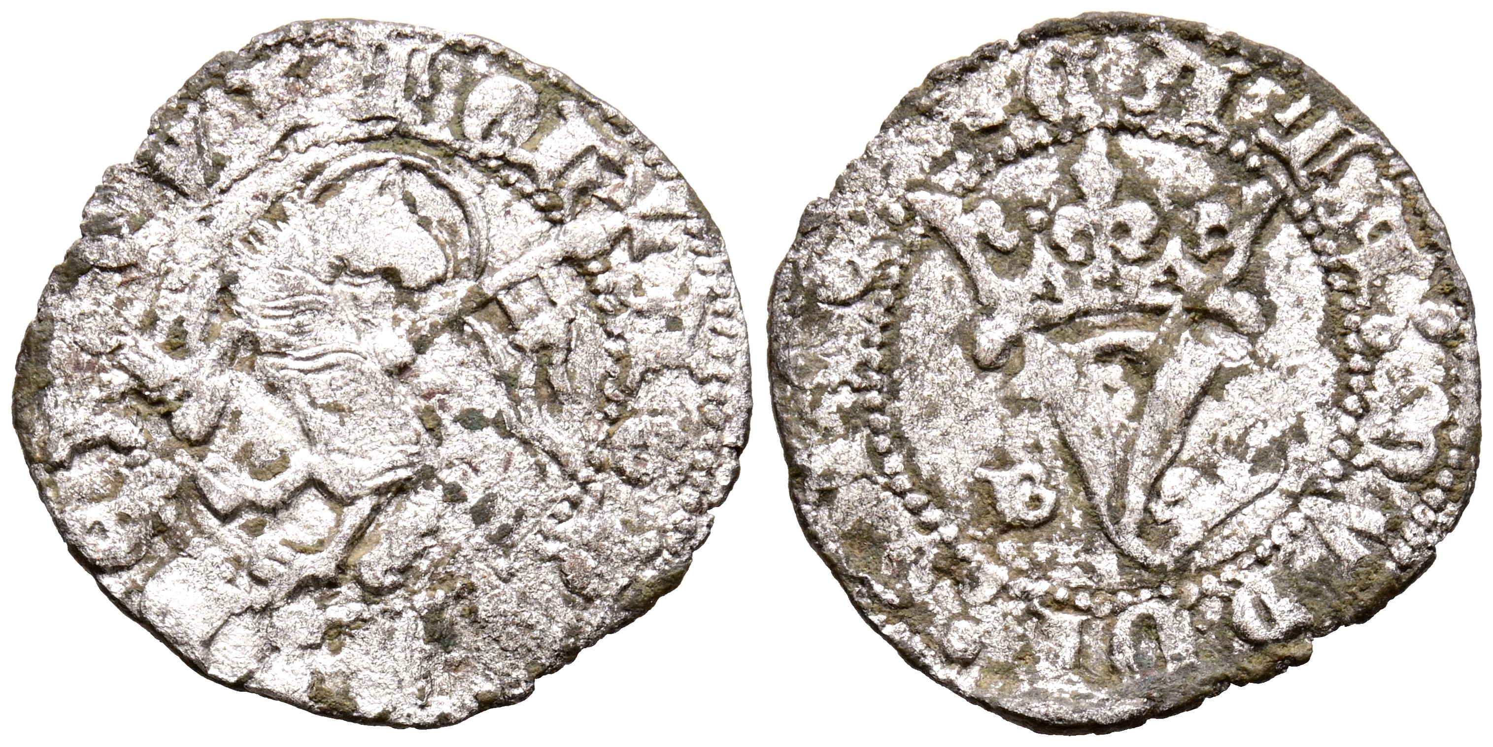 JUAN I (1379-1390). Blanca Agnus Dei. (Ve. 1,45g/21mm). Burgos. (Imperatrix J1:9.4; FAB-549). Anv: Agnus Dei a izquierda con estandarte dentro de gráfila circular, alrededor leyenda: AGNVS DEI QVITOL. Rev: Y coronada y flanqueada por B y S, todo dentro de gráfila circular, alrededor leyenda: CATA MVNDI MISERE. MBC.