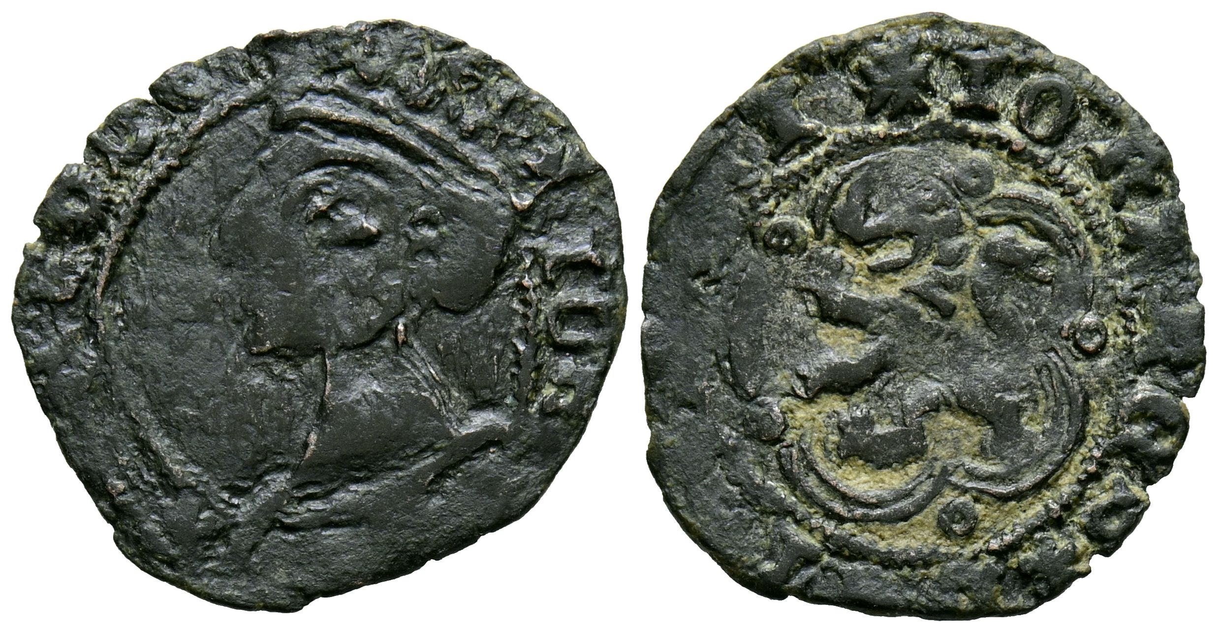 JUAN II (1406-1454). Cornado. (Ae. 0,85g/18mm). Burgos. (Imperatrix Tipo 03, FAB-635var). Anv: Busto coronado de Juan II a izquierda cortando la gráfila circular, debajo B, alrededor leyenda: IOHANES DEI. Rev: León rampante a derecha dentro de una gráfila lobular, alrededor leyenda: IOHANES DEI GRACI. MBC. Escasa.