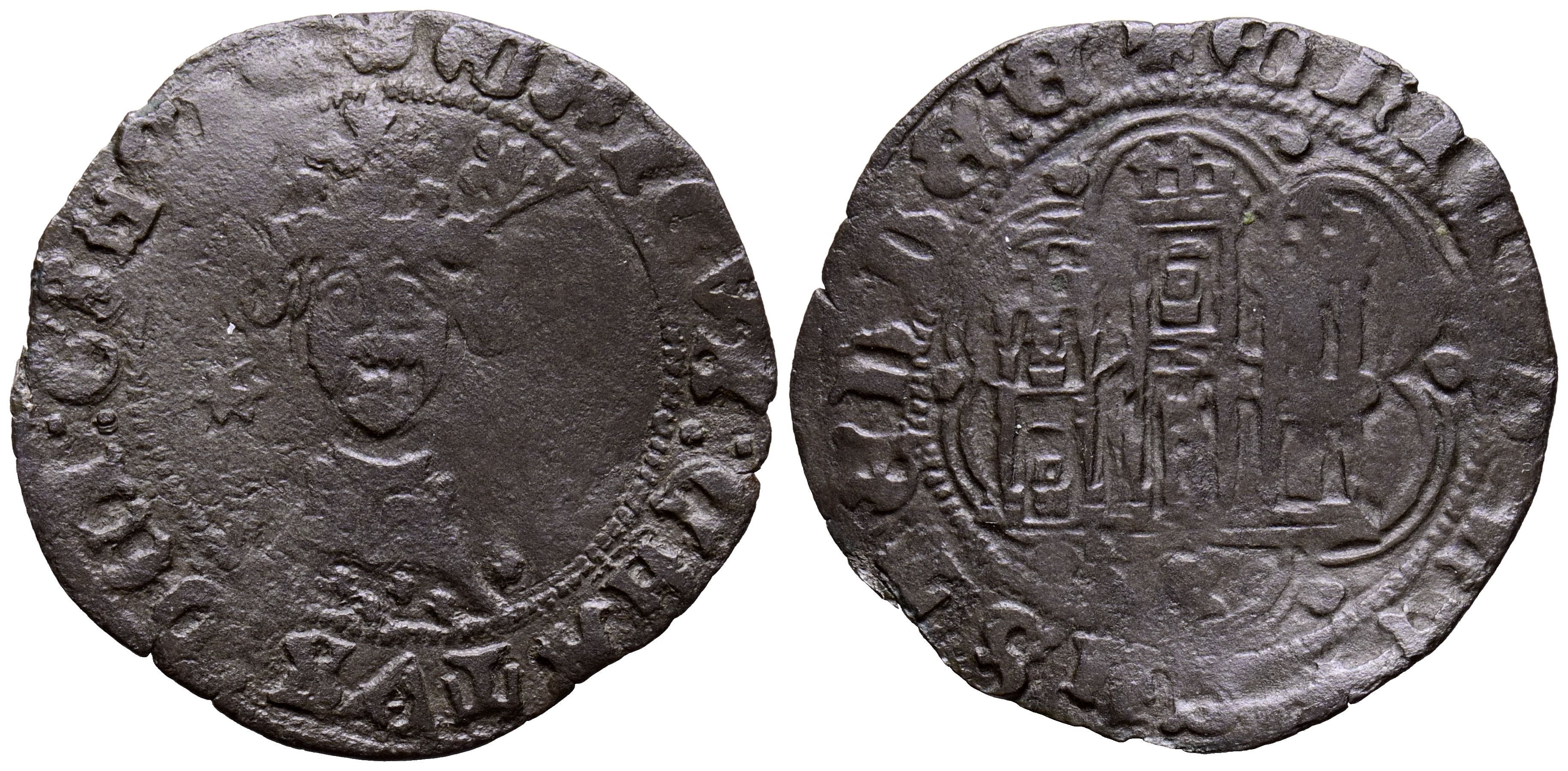 ENRIQUE IV (1454-1474). Cuartillo. (Ve. 1,80g/26mm). Burgos. (Imperatrix E4:14.216; FAB-744.5). Anv: Busto de Enrique IV coronado y de frente dentro de una gráfilar circular, alrededor leyenda: ENRICVS QUARTUS DEI GRACIA. Rev: Castillo, debajo B, todo dentro de una gráfila polilóbular doble, alrededor leyenda: ENRICVS REX CASTELLE E. MBC.