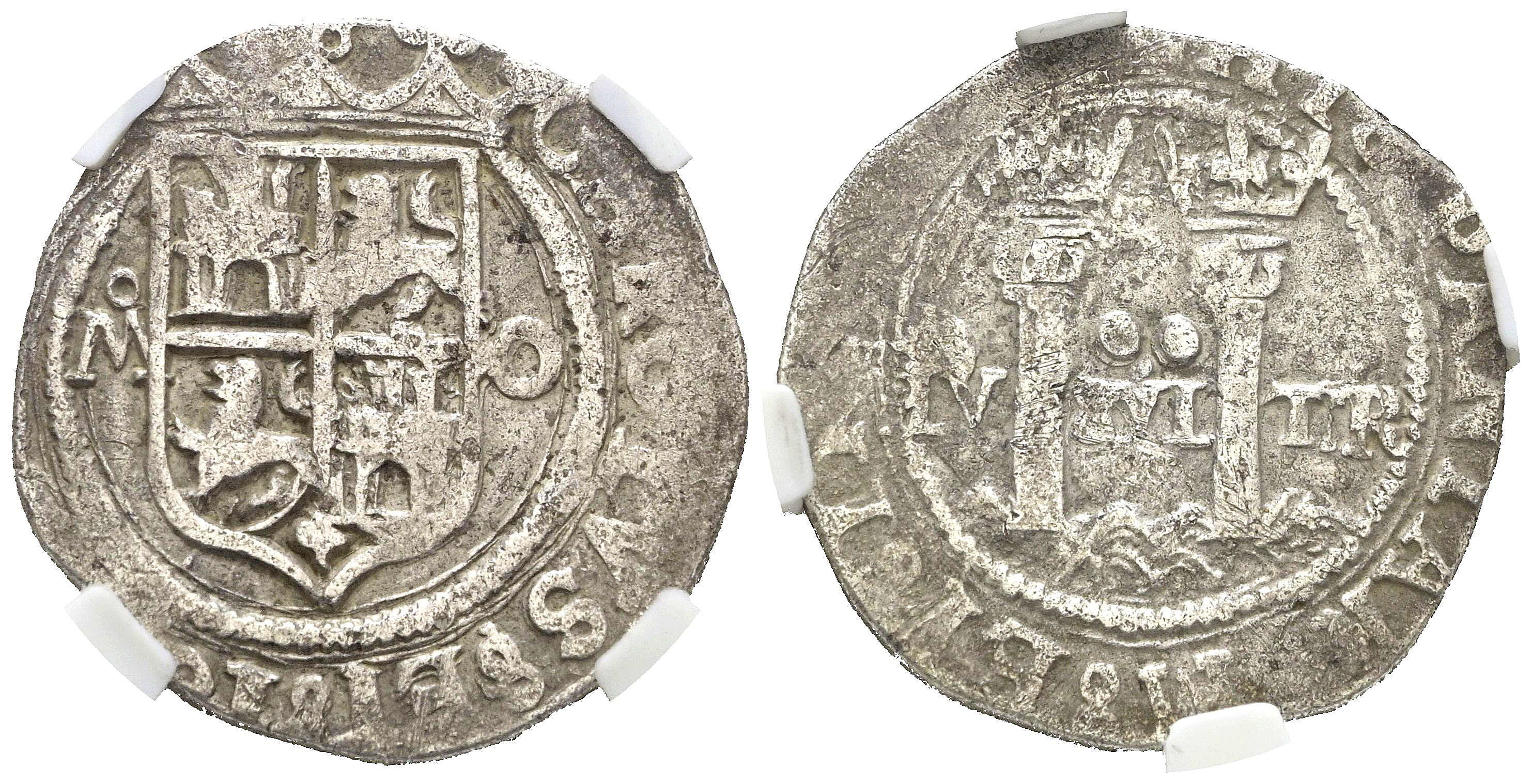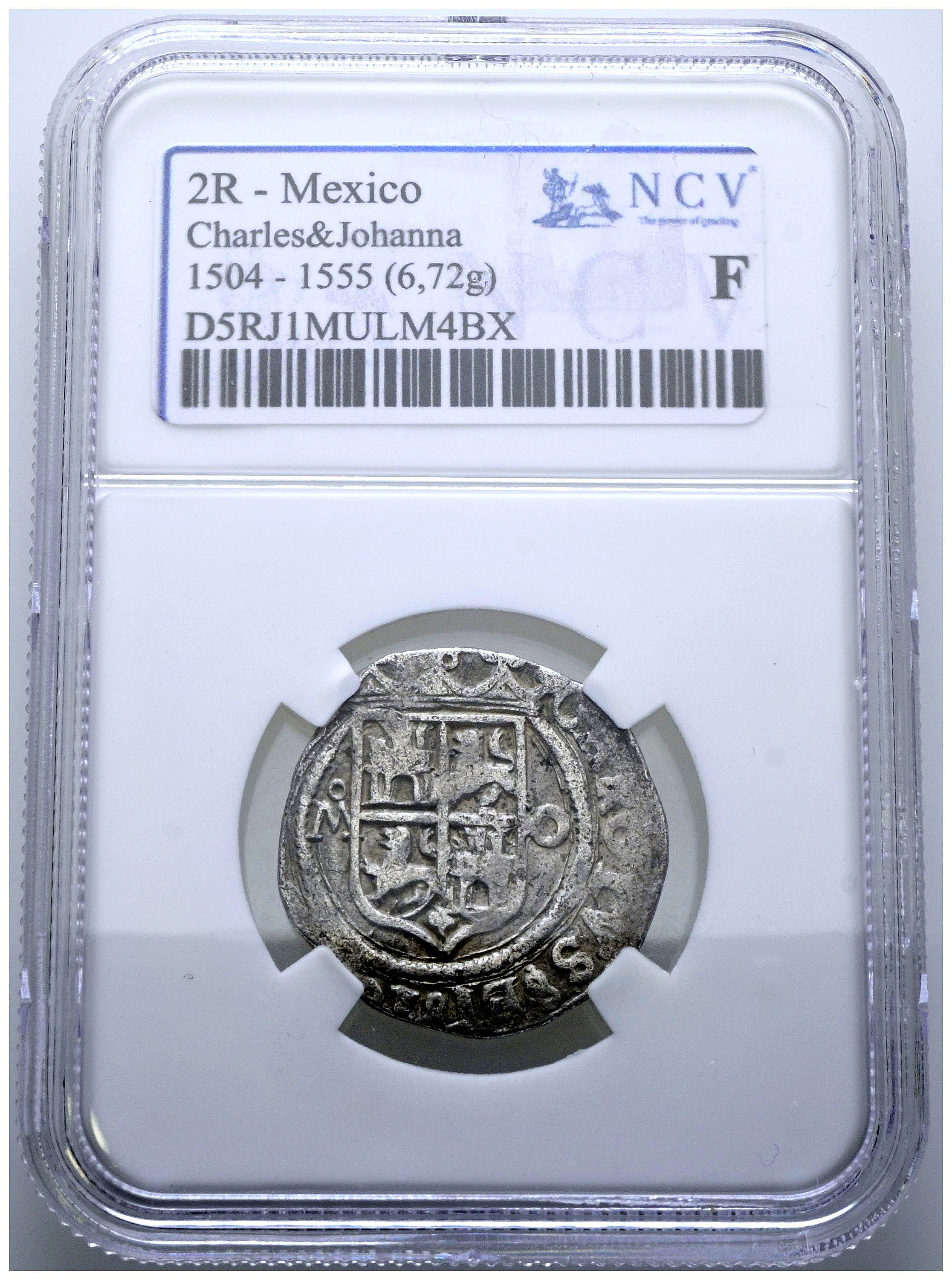 JUANA Y CARLOS (1504-1555). 2 Reales. (Ar. 6,72g/28mm). S/D. México M-O. (Cal-2019-103). Encapsulada por NCV F.