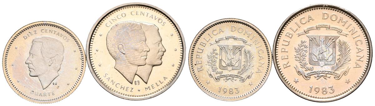 REPUBLICA DOMINICANA. Serie 10 y 20 Centavos. 1983. Duarte, Sanchez y Mella. Presentado en estuche oficial. PROOF. Escasas.