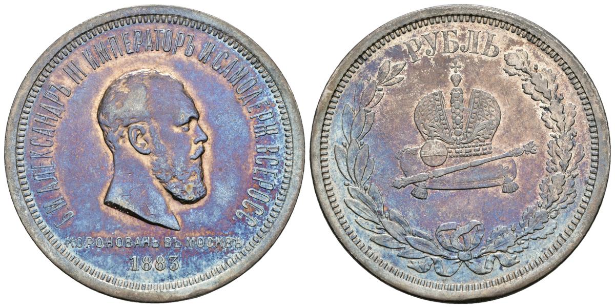 RUSIA. Alexander III. Rublo. 1883. St. Petesburg. Y#43; Bitkin 217. Ar. 20,75g. Espectacular tono irisado. MBC+.
