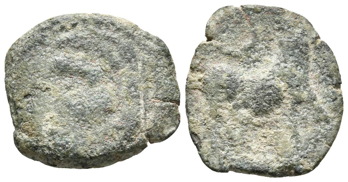 CARISSA-OBULCO (ACUÑACION HIBRIDA). Semis. 220-20 a.C. A/ Cabeza de Hércules a izquierda. R/ Toro a derecha, encima creciente. FAB-No cita (FAB-446 y FAB-1832). Ae. 3,70g. BC+/MBC-. Muy rara.