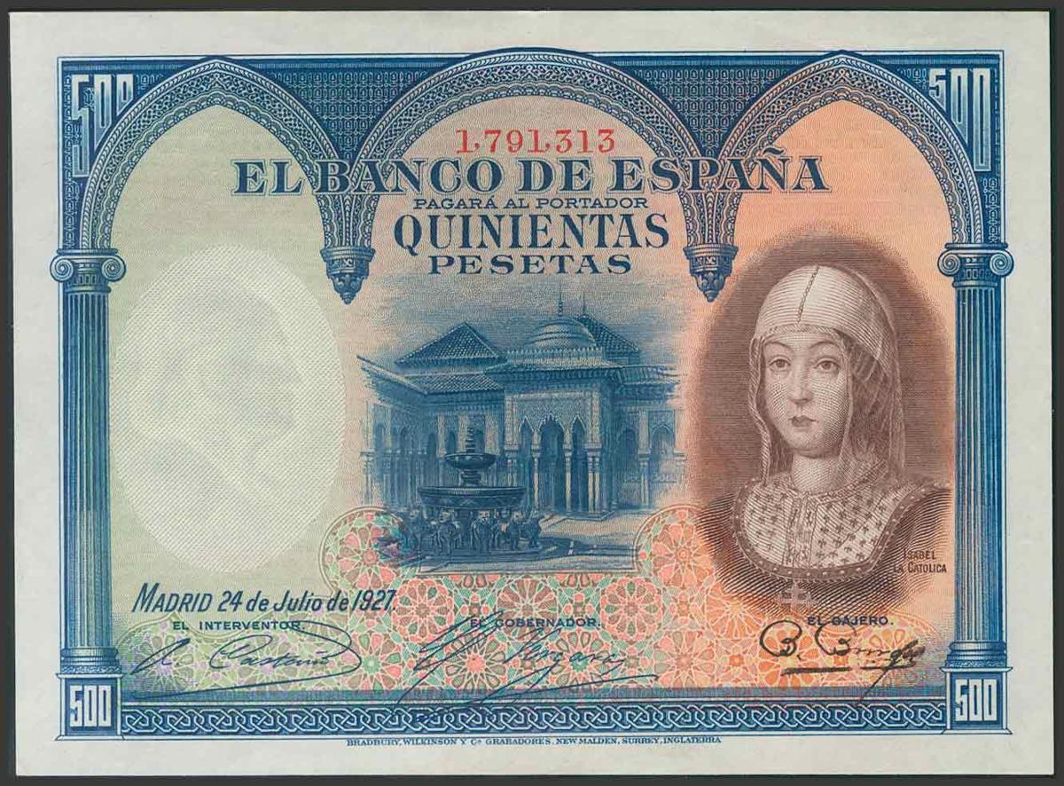 500 Pesetas. 24 de Julio de 1927. Sin serie. (Edifil 2017: 352). Apresto original. EBC+.