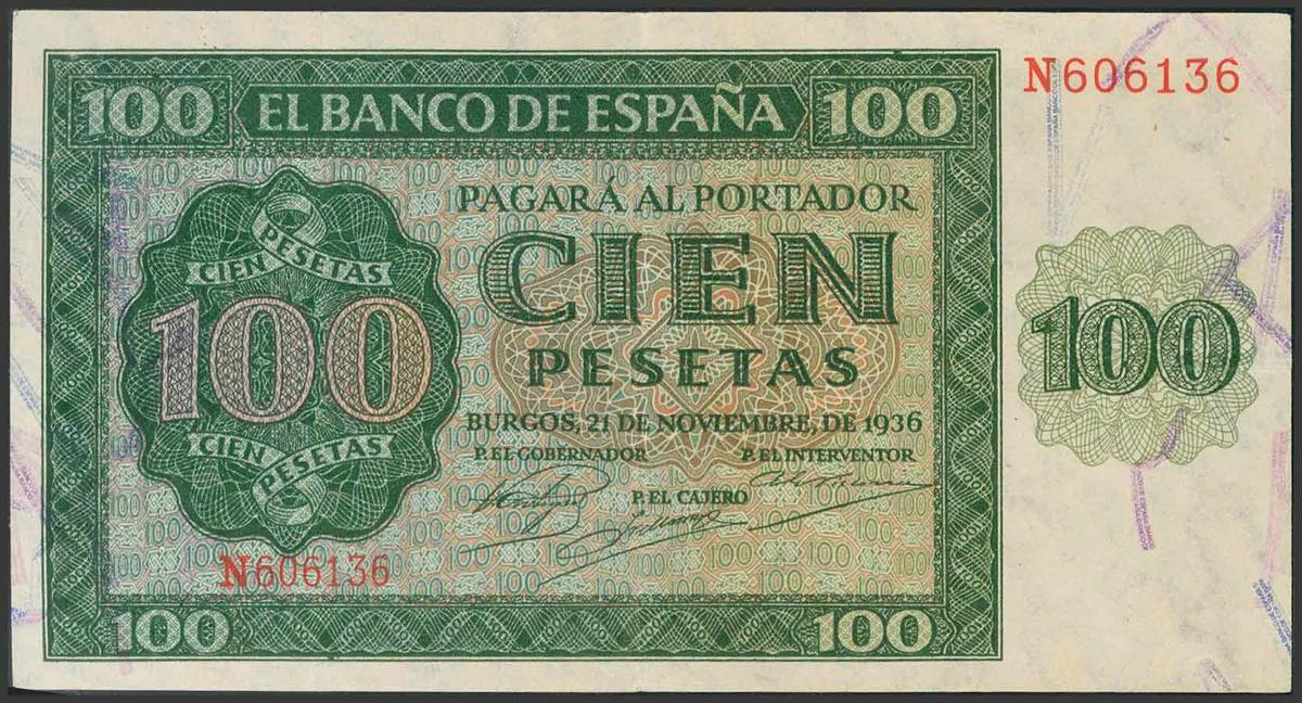 ESPAÑA. 100 Pesetas. 21 de Noviembre de 1936. Banco de España, Burgos. Serie N. (Edifil 2017: 421a). EBC.