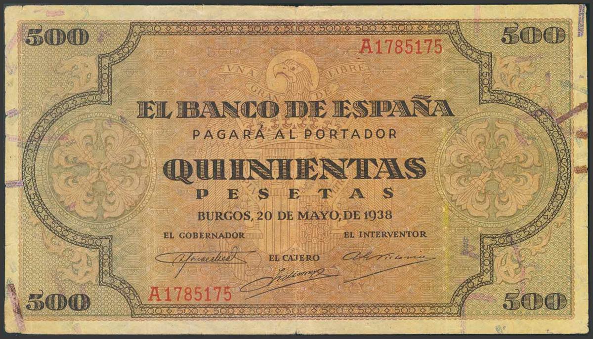 500 Pesetas. 20 de Mayo de 1938. Serie A. (Edifil 2017: 433). MBC.