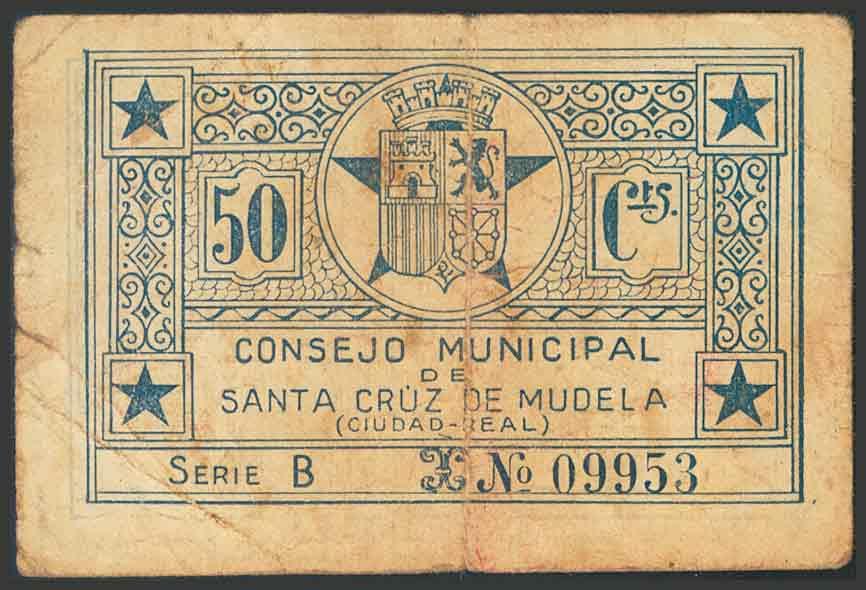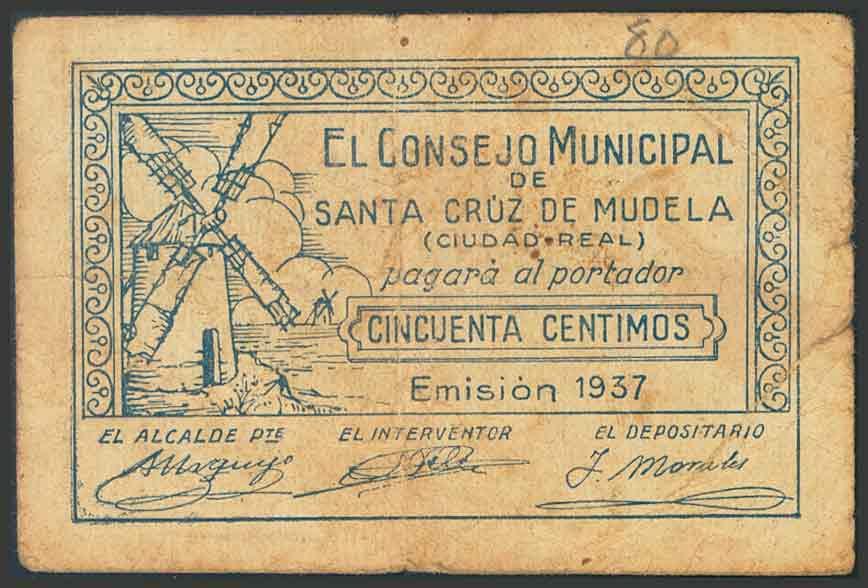 SANTACRUZ DE LA MUDELA (CIUDAD REAL). 50 Céntimos. 1937. (González: 4731). Inusual. RC+.
