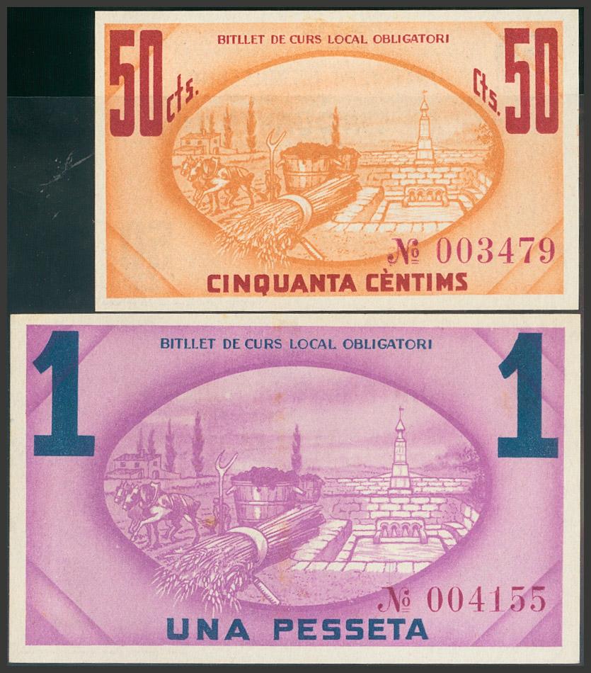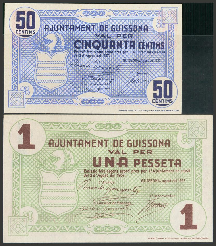 GUISSONA (LLEIDA). 50 Céntimos y 1 Peseta. 2 de Agosto de 1937. (González: 8180/81). SC.