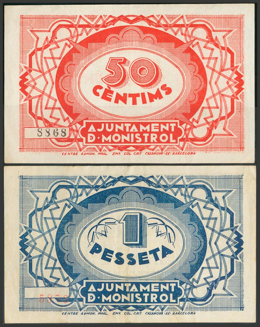 MONISTROL (BARCELONA). 50 Céntimos y 1 Peseta. 27 de Mayo de 1937. (González: 8726/27). EBC.