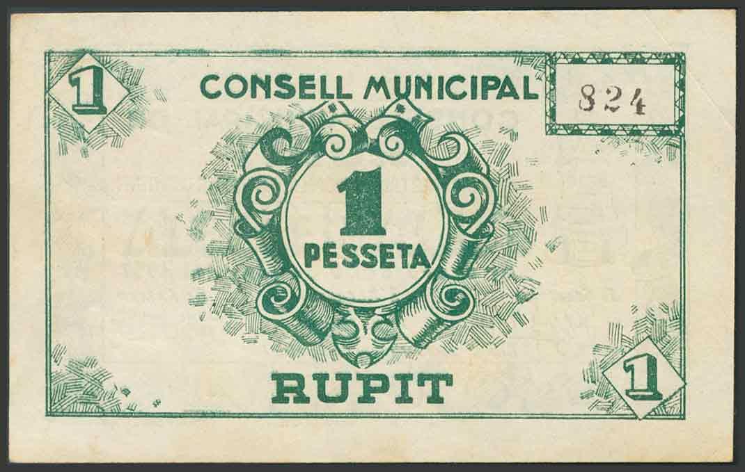 RUPIT (BARCELONA). 1 Peseta. 6 de Junio de 1937. (González: 9775). MBC.