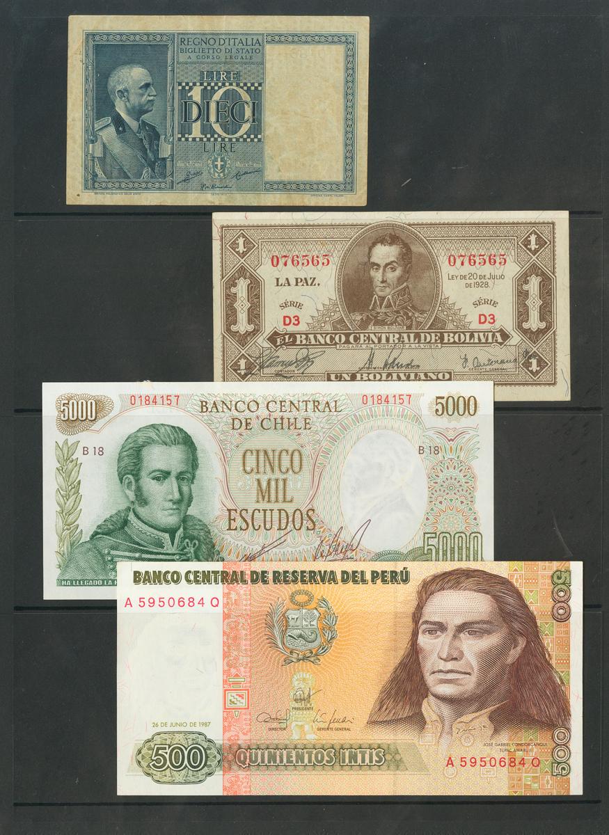 MUNDIAL. Lote compuesto por 15 billetes de diferentes países: Bolivia, Brasil, Chile, España, Italia y Perú. SC/BC. A EXAMINAR.