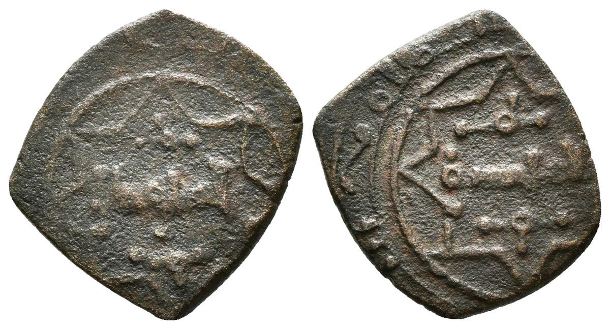 TAIFA DE BADAJOZ. Umar Al-Mutawakil. Fracción de Dirham. 460-487H. Vives No cita; Fochoso III8; D. Francés Vañó 45-47. Ve. 0,81g. MBC/MBC-.