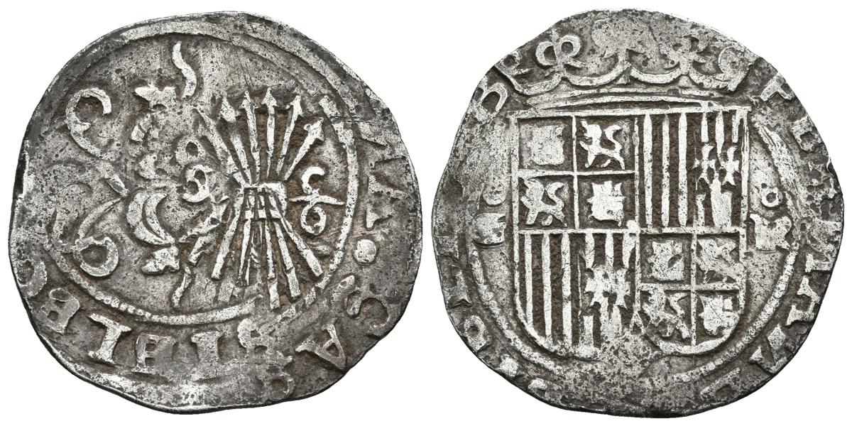 REYES CATOLICOS. 1 Real. (1474-1504). Granada G y K superados por roeles. A/ Leyenda: + FERNANDVS : ET ELISAB (Las N invertidas). R/ Leyenda + RBX : ET : REGINA . CASTE LEG. Cal-326var; J. Luis López de la Fuente F4.6.3 var. Ar. 3,23g. MBC-/BC+. Escasa.
