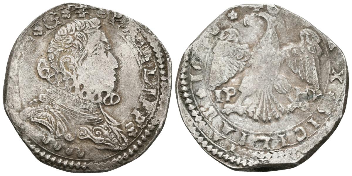 FELIPE IV. 4 Taris. 1628. Messina IP-MP. Vti-190; Mir-355/20. Ar. 10,36g. MBC/MBC+.