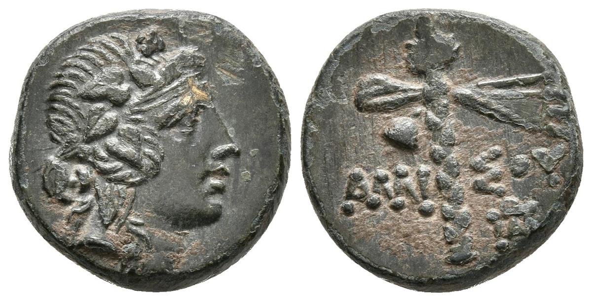 PONTOS, Amisos. Ae15. 85-65 a.C. A/ Cabeza de Dionisos con corona de hiedra a derecha. R/ Thyrsos, a ambos lados AMI-EOY. SNG BM 1192-1195; HGC 251. Ae. 4,22g. MBC+.