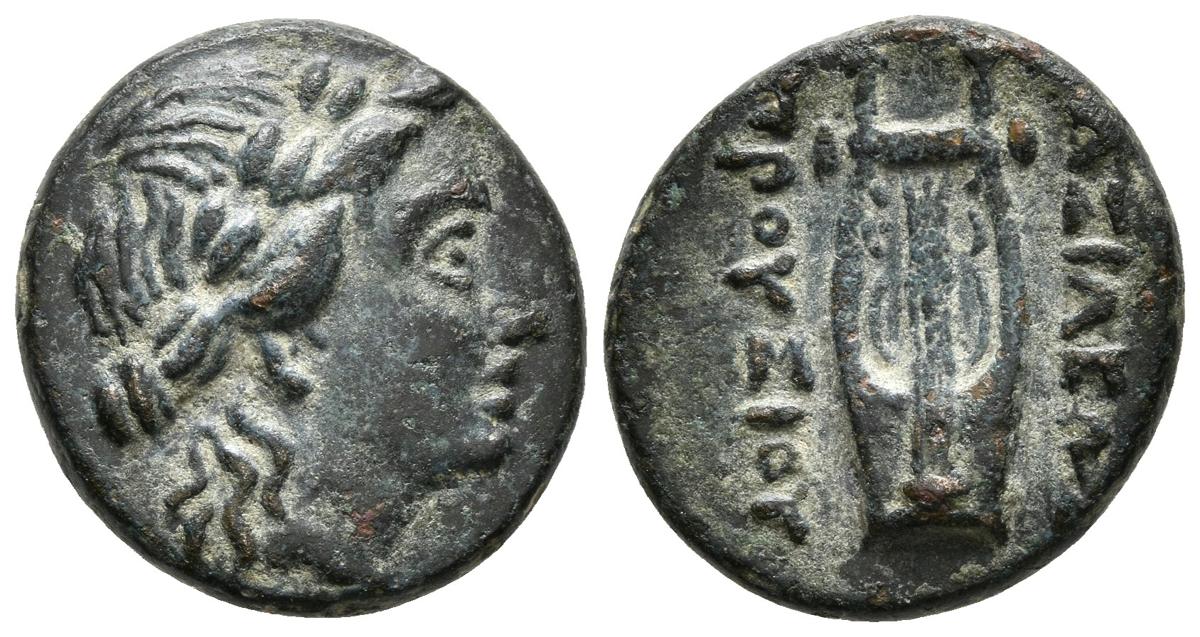REINO DE BITHYNIA. Prusias I Chloros. Ae19. 230-182 a.C. A/ Cabeza laureada de Apollo a derecha. R/ Lira, a ambos lados leyenda. Rec Gen 18; SNG von Aulock 249. Ae. 5,34g. MBC+.