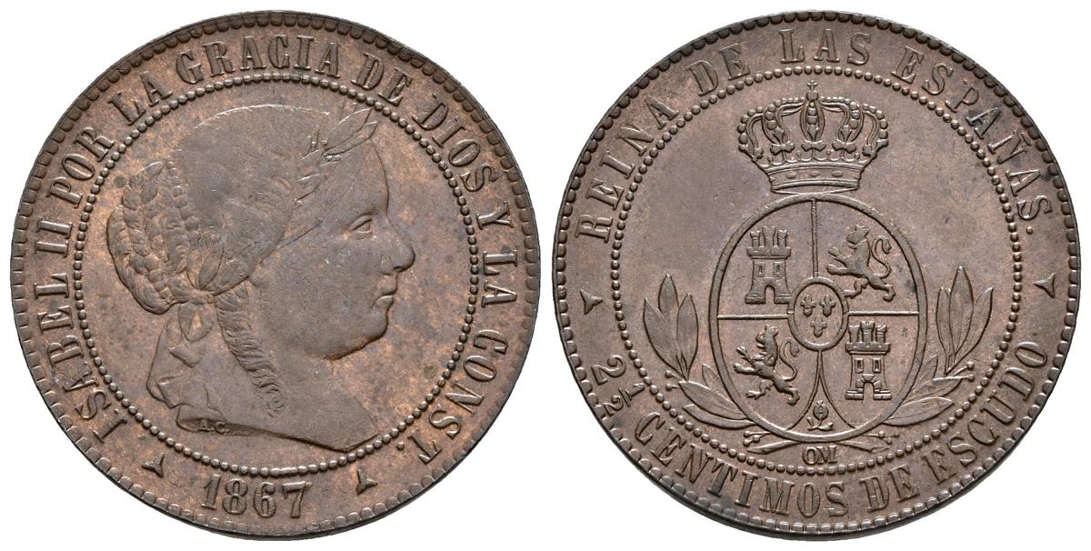 ISABEL II. 2 1/2 Céntimos de escudo. 1867. Segovia OM. Cal-647. Ae. 6,26g. EBC-.