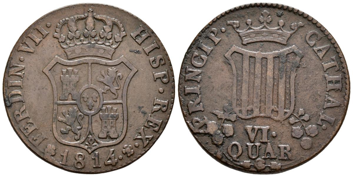 FERNANDO VII. 6 Cuartos. 1814. Cataluña. Cal-1518. Ae. 13,23g. MBC-.