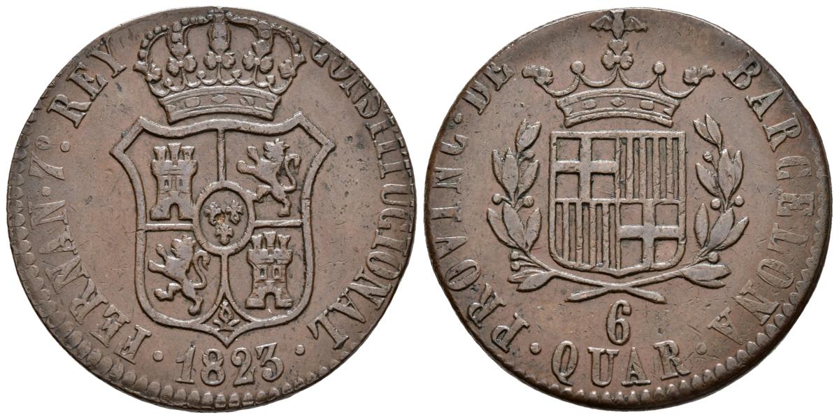 FERNANDO VII. 6 Cuartos. 1823. Cataluña. Cal-1519. Ae. 14,28g. MBC.