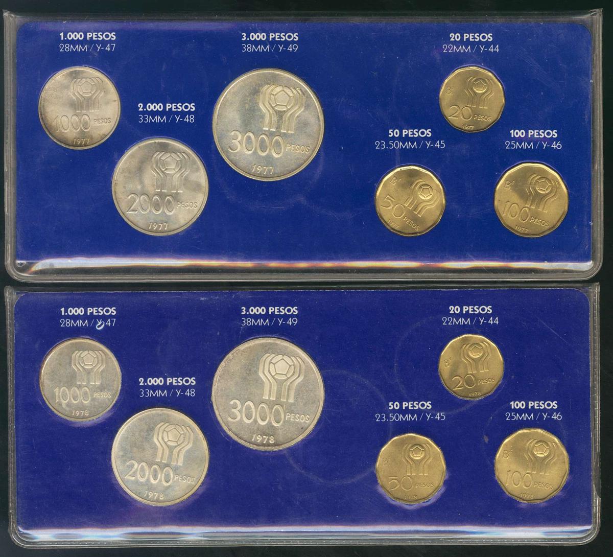 ARGENTINA. Serie completa 1977 y 1978. Mundial de fútbol 1978. Ar-Cu/Ni. Presentadas en estuche original. SC.
