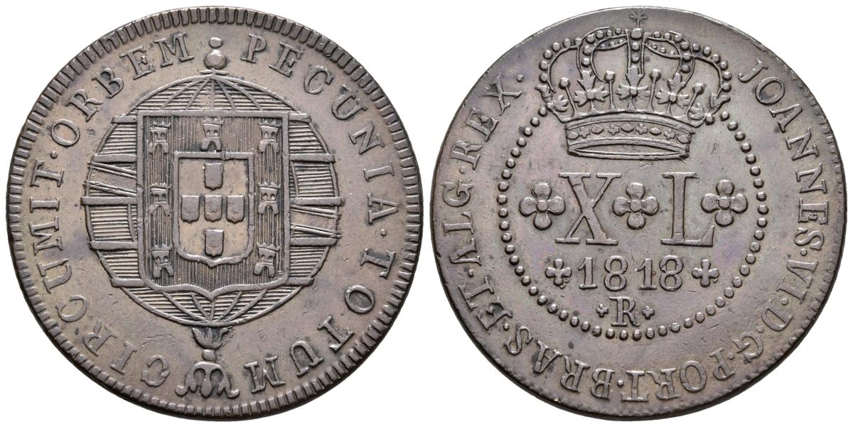 BRASIL. Joao VI. XL Reis. 1818. Río de Janeiro. Gomes 07.01. Ae. 14,15g. MBC+.