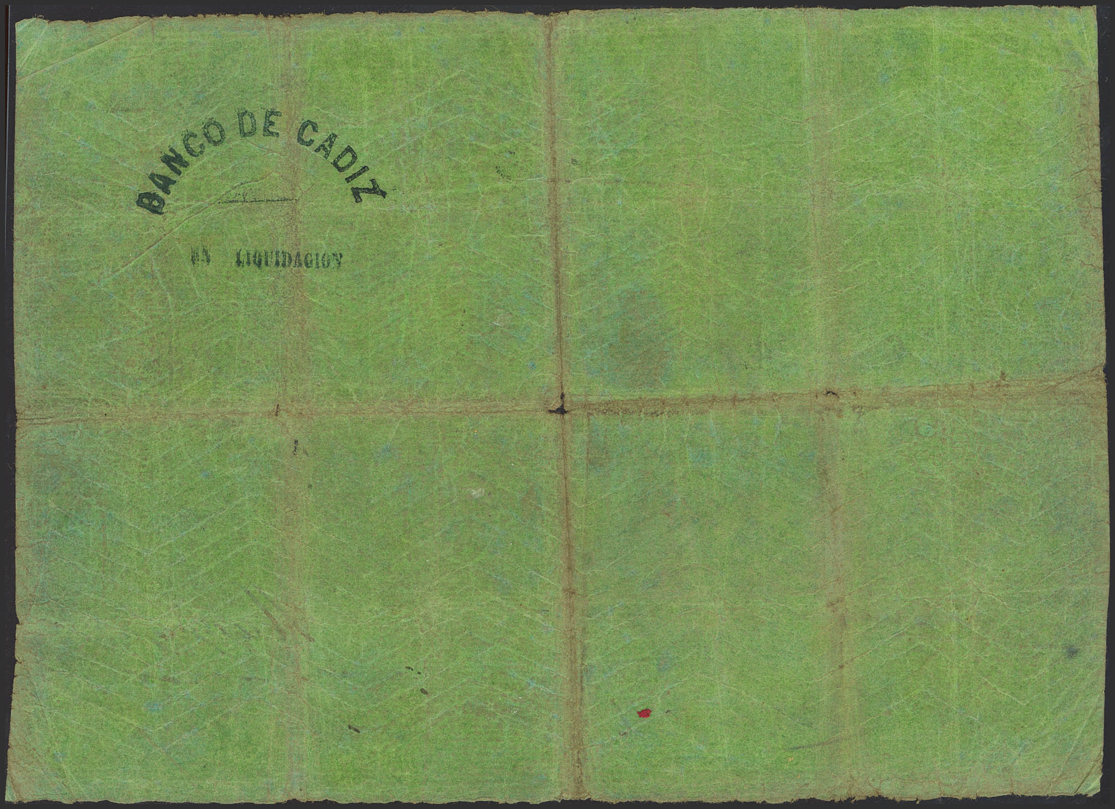 BANCO DE CADIZ. 100 Reales. Sin fecha. Emisión III. (Edifil 2023: 78). Habituales erosiones que acompañan a los dobleces. MBC-.