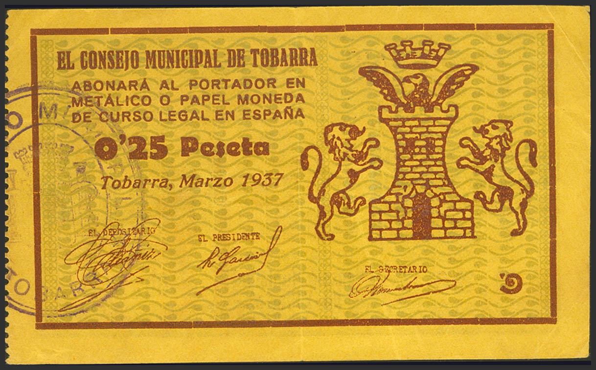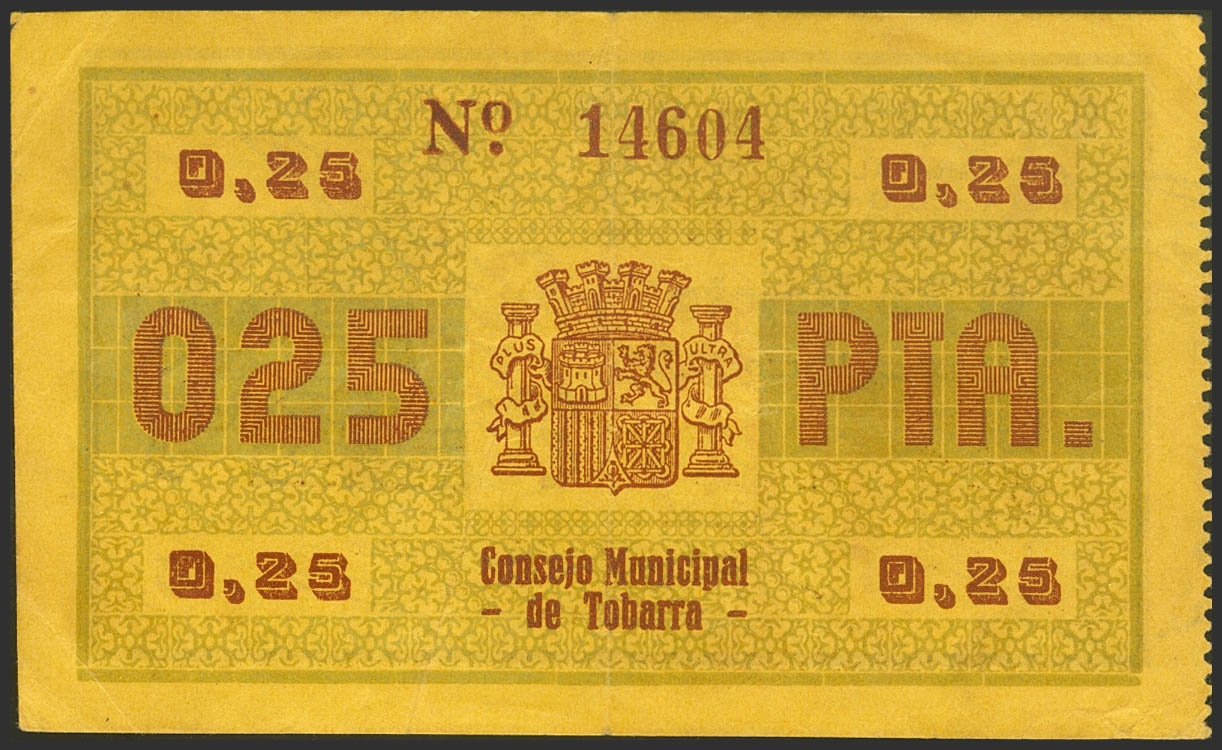 TOBARRA (ALBACETE). 25 Céntimos. Marzo 1937. (González: 5016). MBC+.