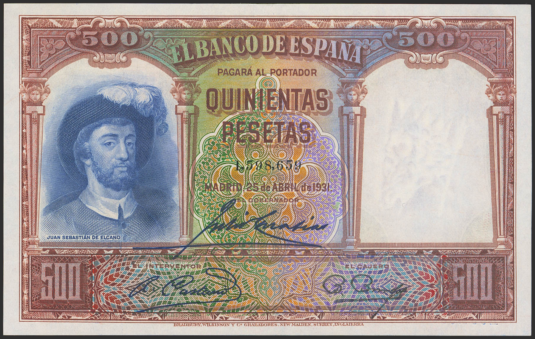 500 Pesetas. 25 de Abril de 1931. Sin serie. (Edifil 2021: 361). Apresto original. SC-.